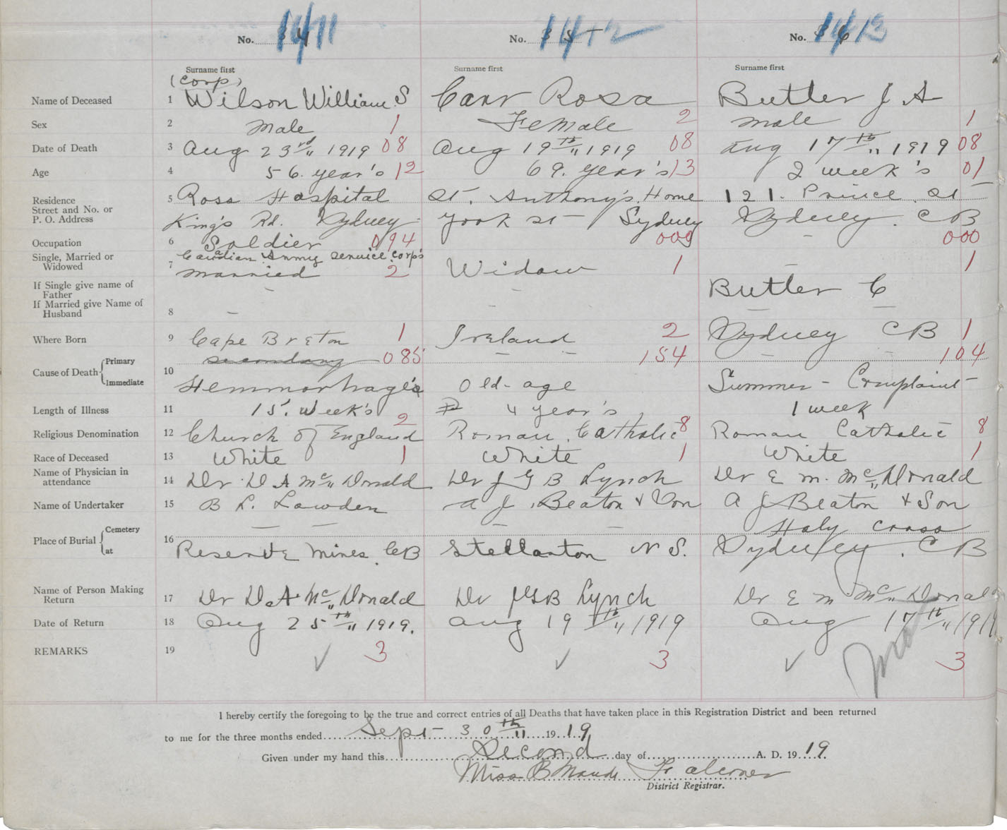 Death Registration: Year: 1919 book: 30 page: 336 number: 1411