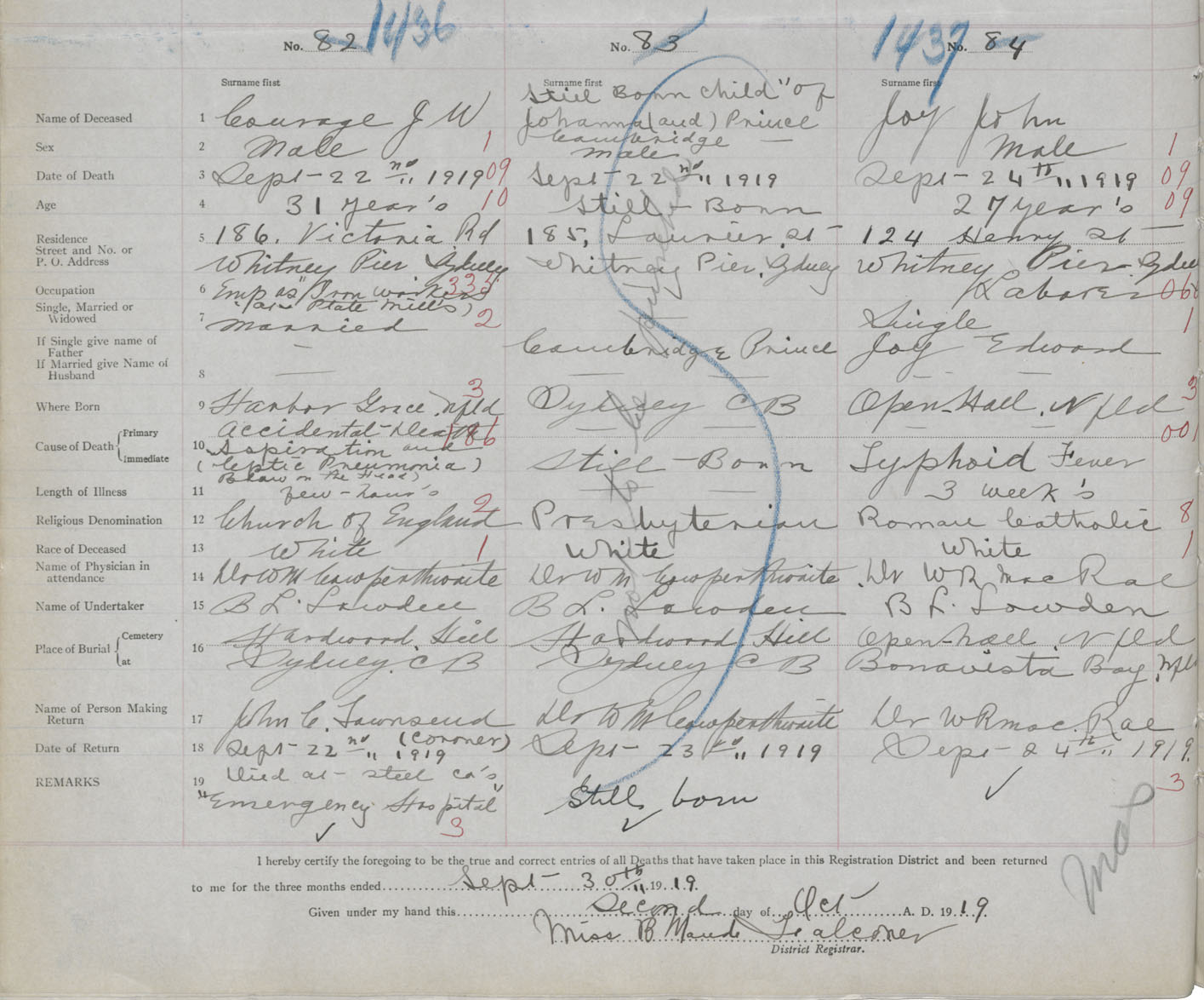 Death Registration: Year: 1919 book: 30 page: 340 number: 1436
