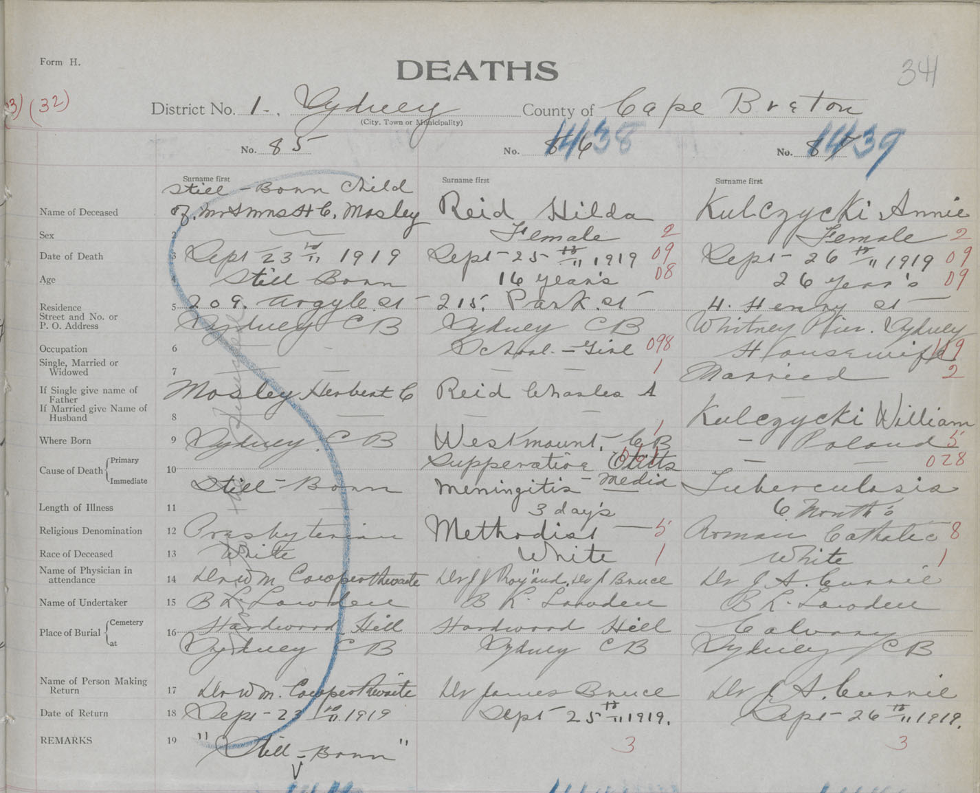 Death Registration: Year: 1919 book: 30 page: 341 number: 1438