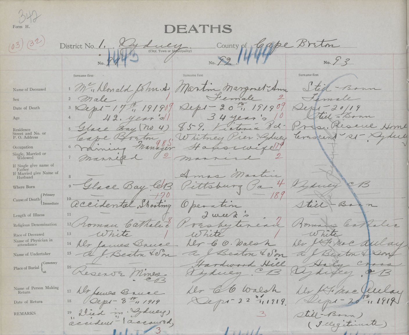 Death Registration: Year: 1919 book: 30 page: 342 number: 1443
