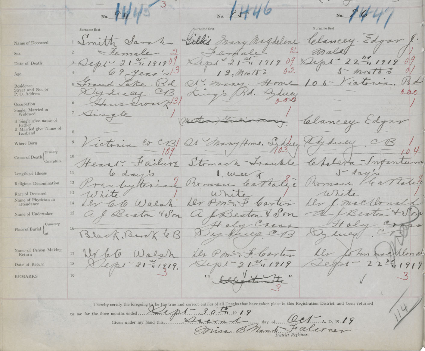 Death Registration: Year: 1919 book: 30 page: 342 number: 1445