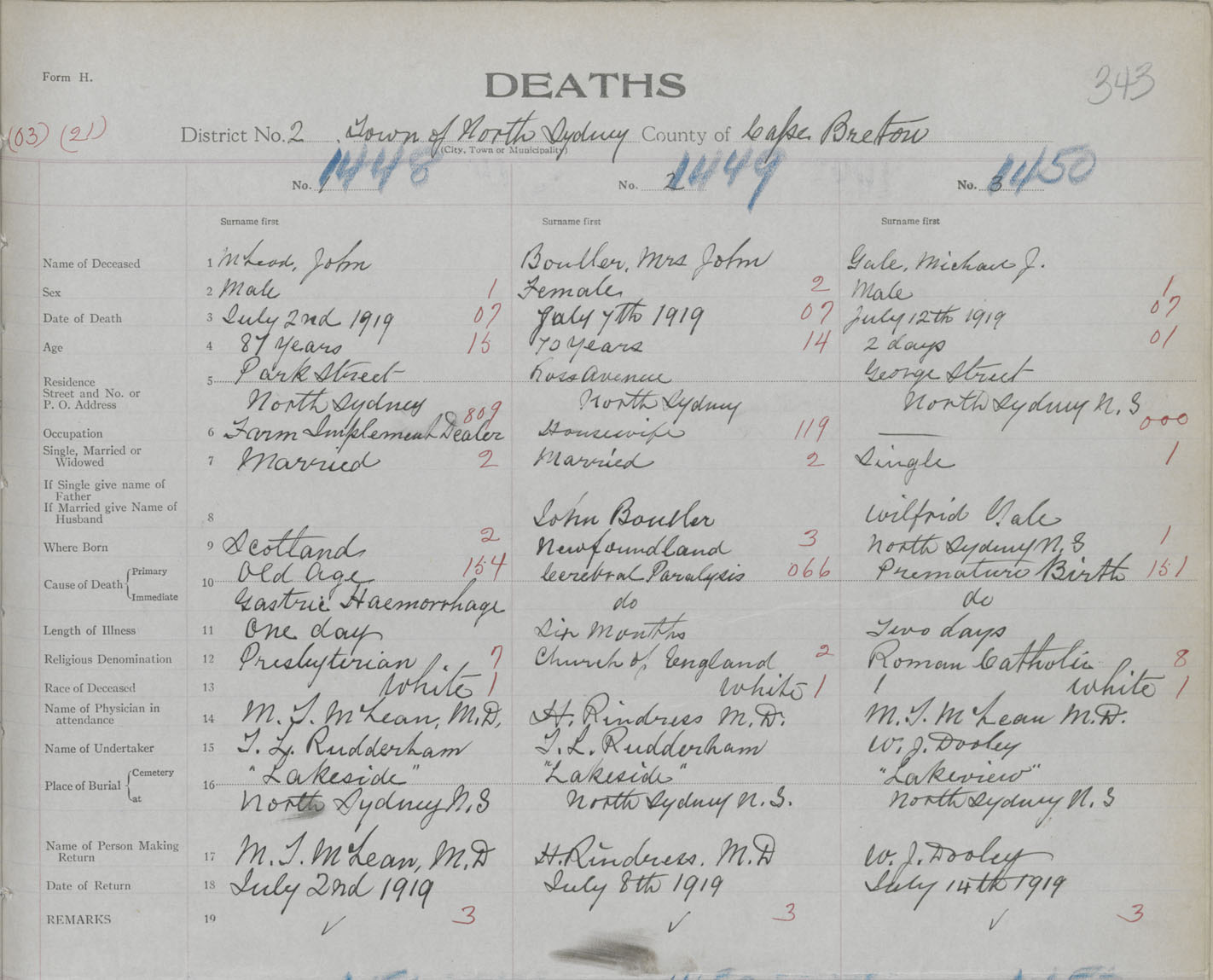 Death Registration: Year: 1919 book: 30 page: 343 number: 1448
