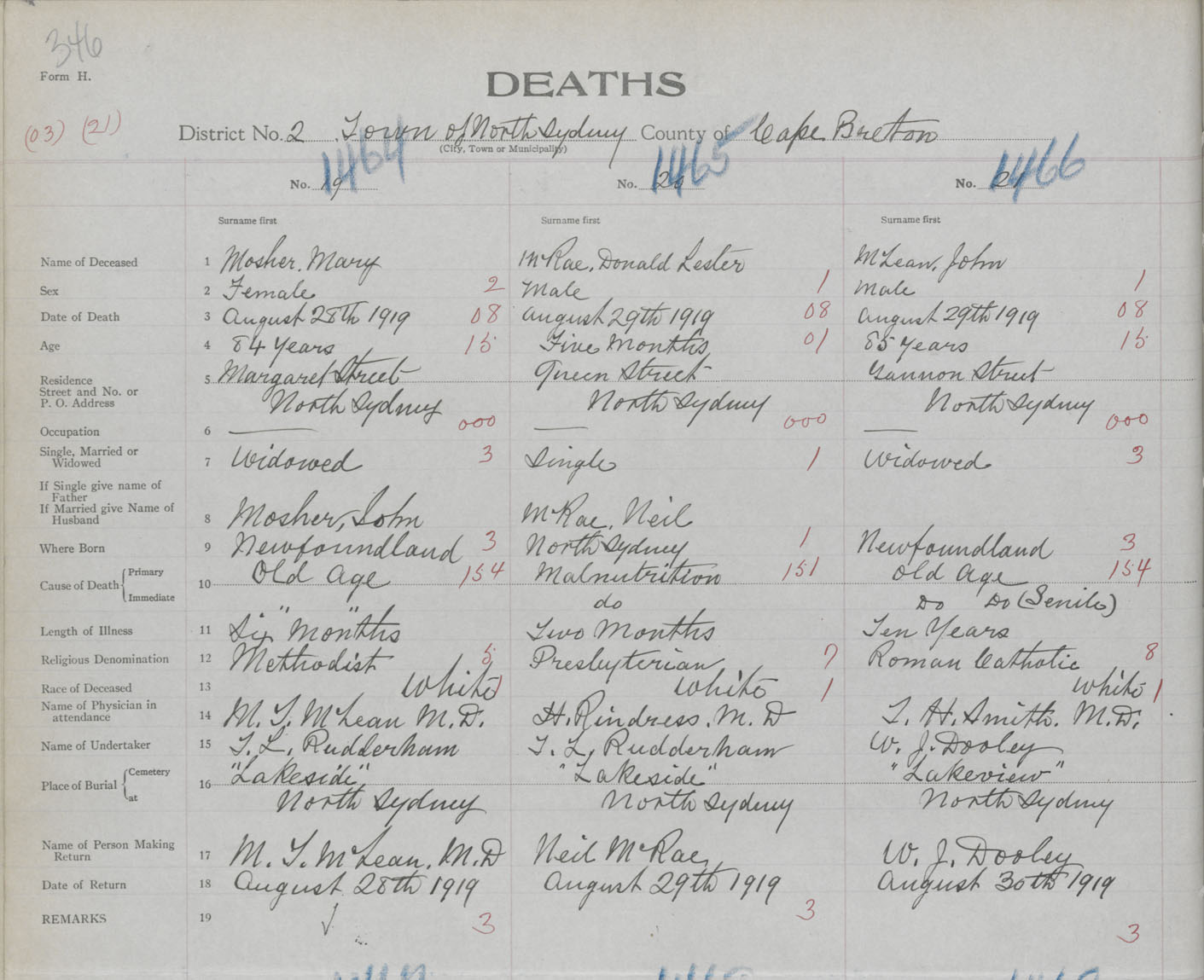 Death Registration: Year: 1919 book: 30 page: 346 number: 1464
