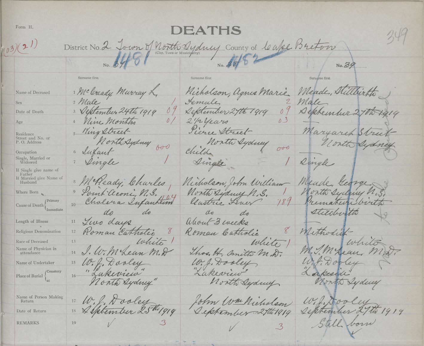 Death Registration: Year: 1919 book: 30 page: 349 number: 1481