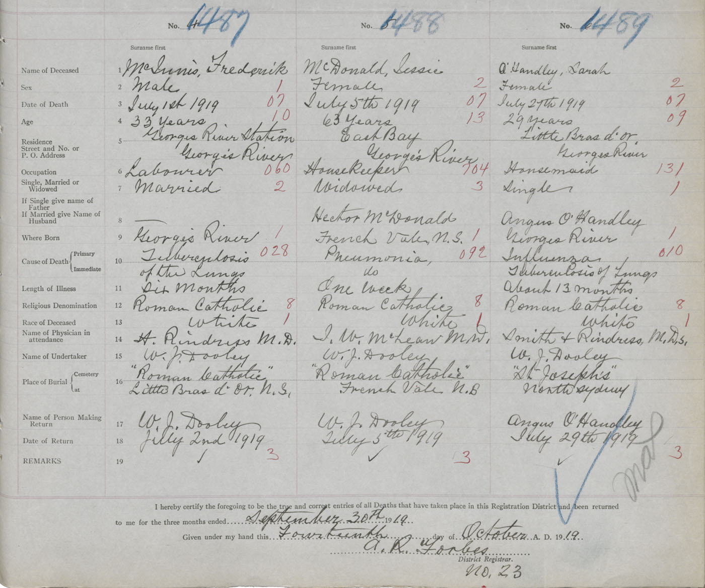 Death Registration: Year: 1919 book: 30 page: 351 number: 1487