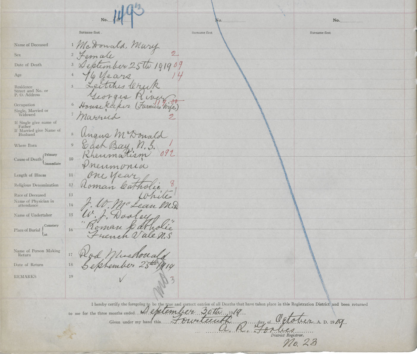 Death Registration: Year: 1919 book: 30 page: 352 number: 1493