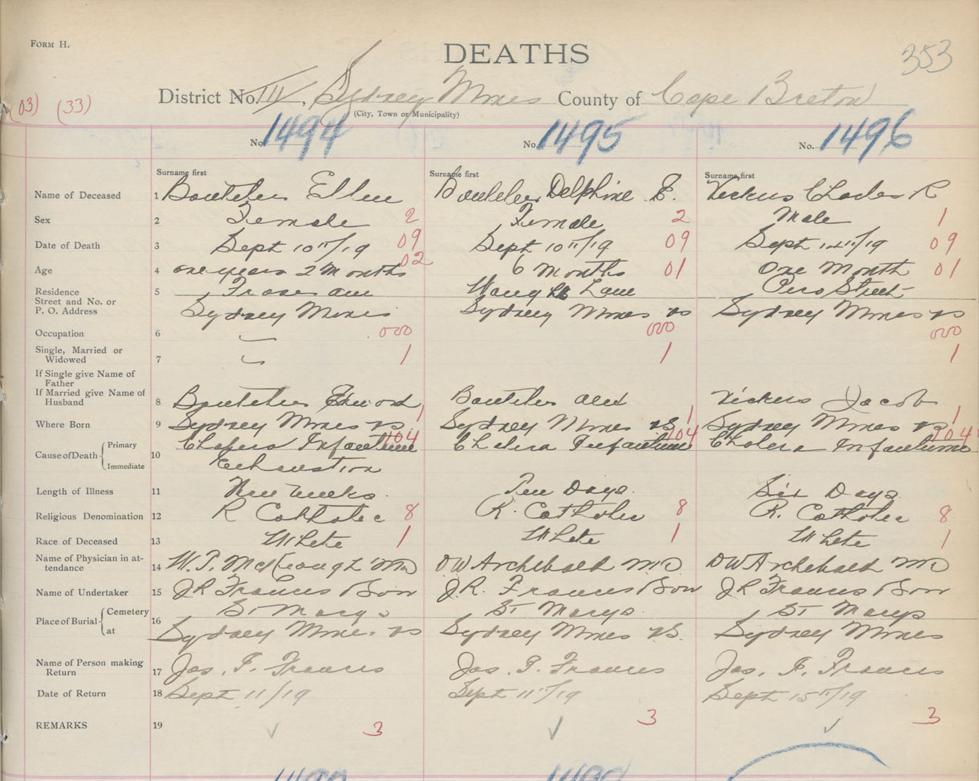 Death Registration: Year: 1919 book: 30 page: 353 number: 1494