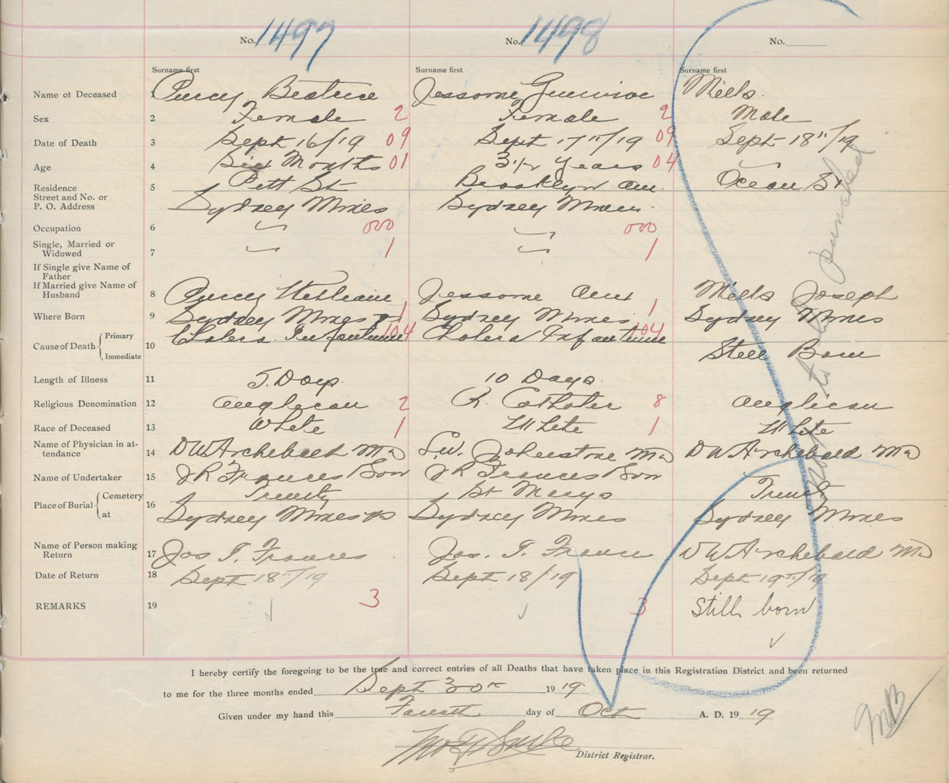 Death Registration: Year: 1919 book: 30 page: 353 number: 1497