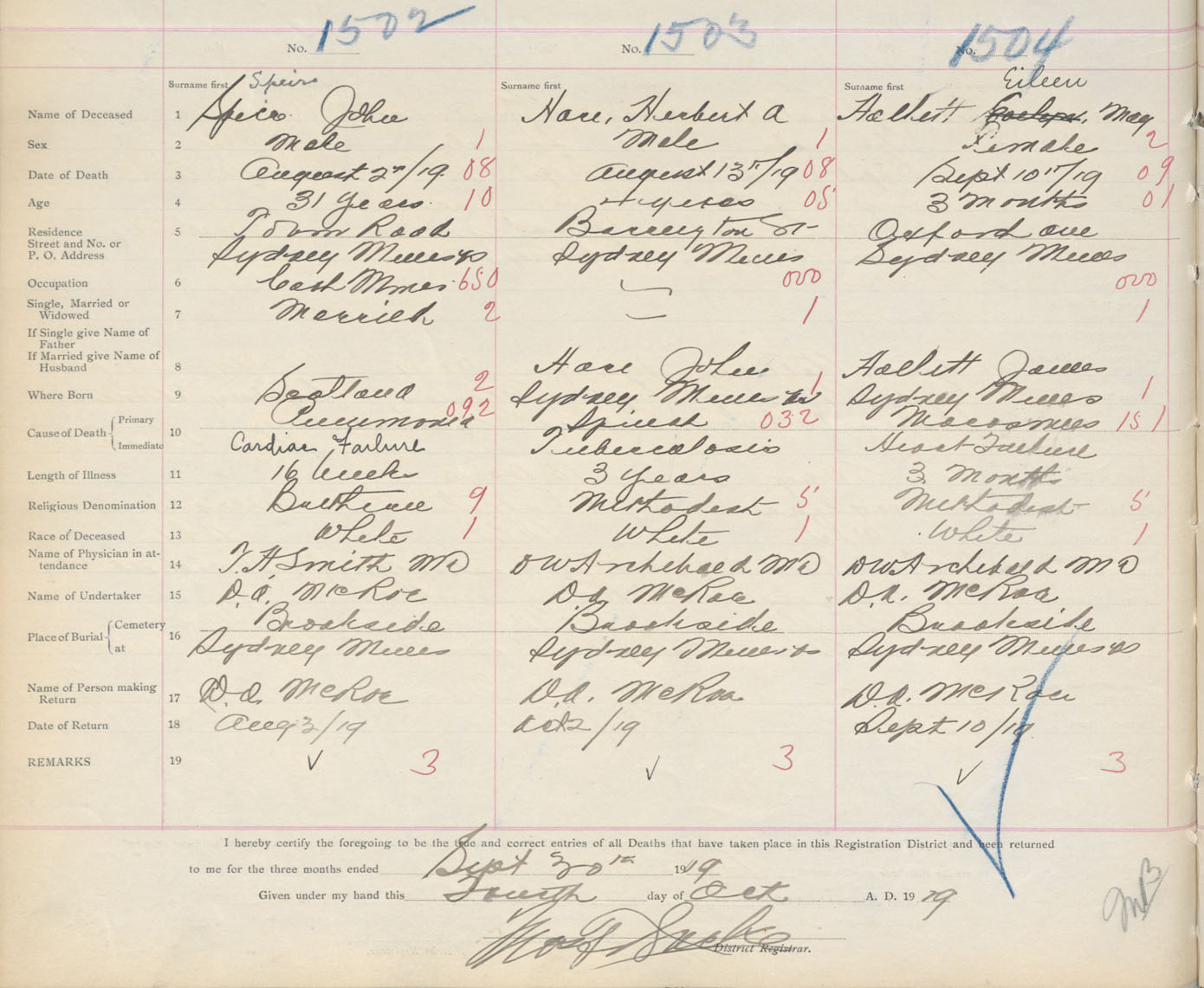 Death Registration: Year: 1919 book: 30 page: 354 number: 1502