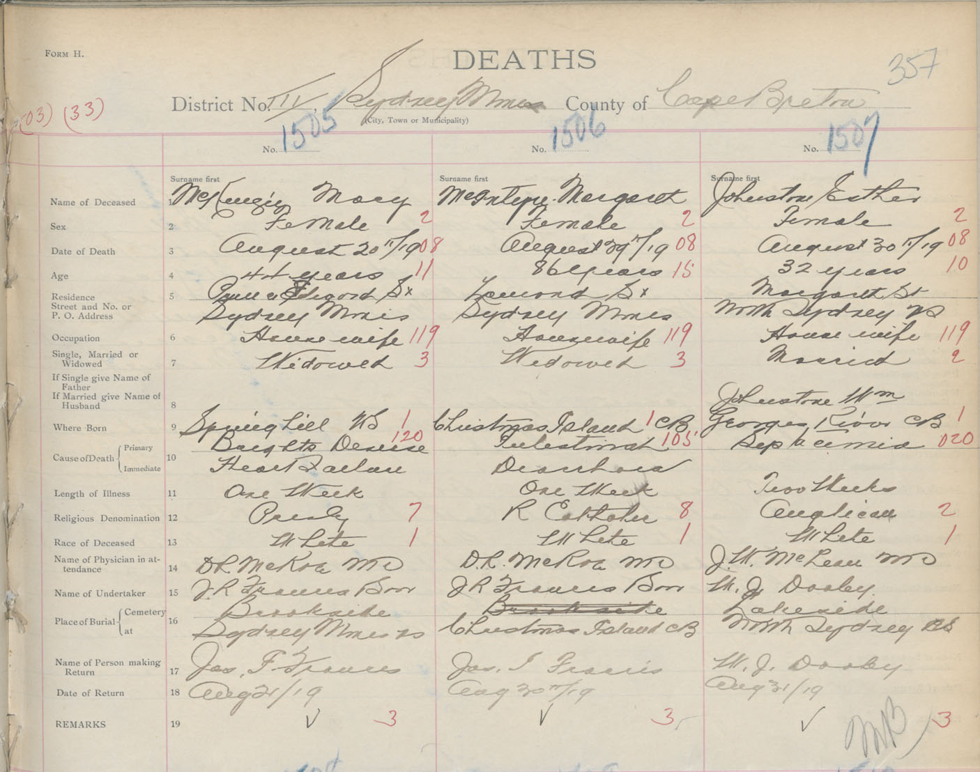 Death Registration: Year: 1919 book: 30 page: 357 number: 1505