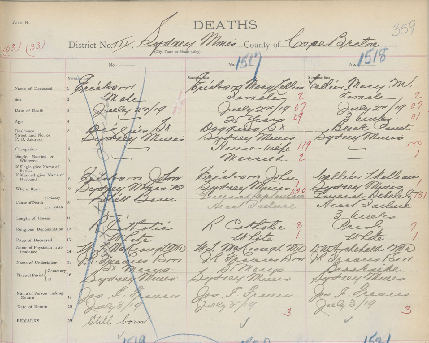 Death Registration: Year: 1919 book: 30 page: 359 number: 1517