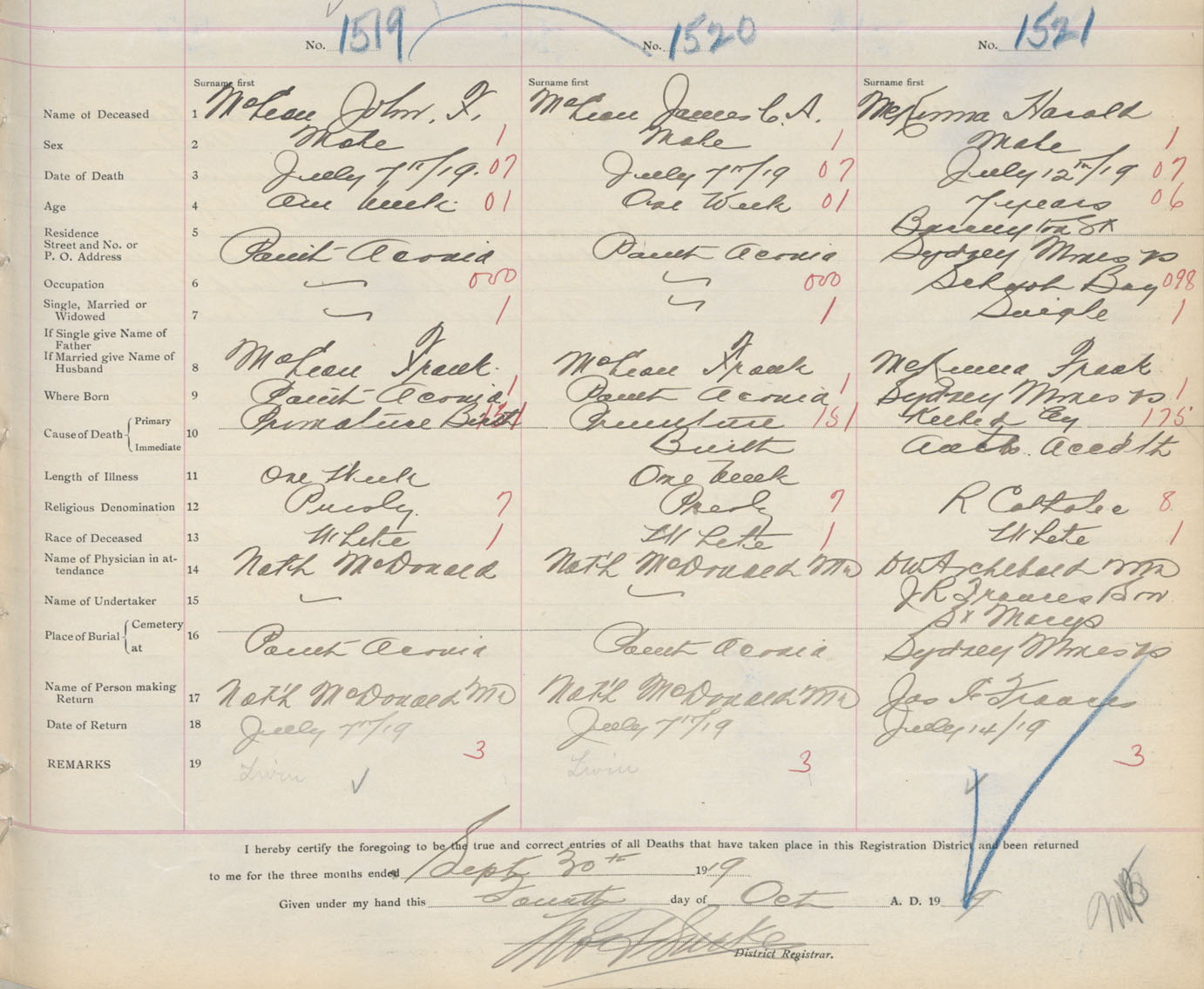 Death Registration: Year: 1919 book: 30 page: 359 number: 1519