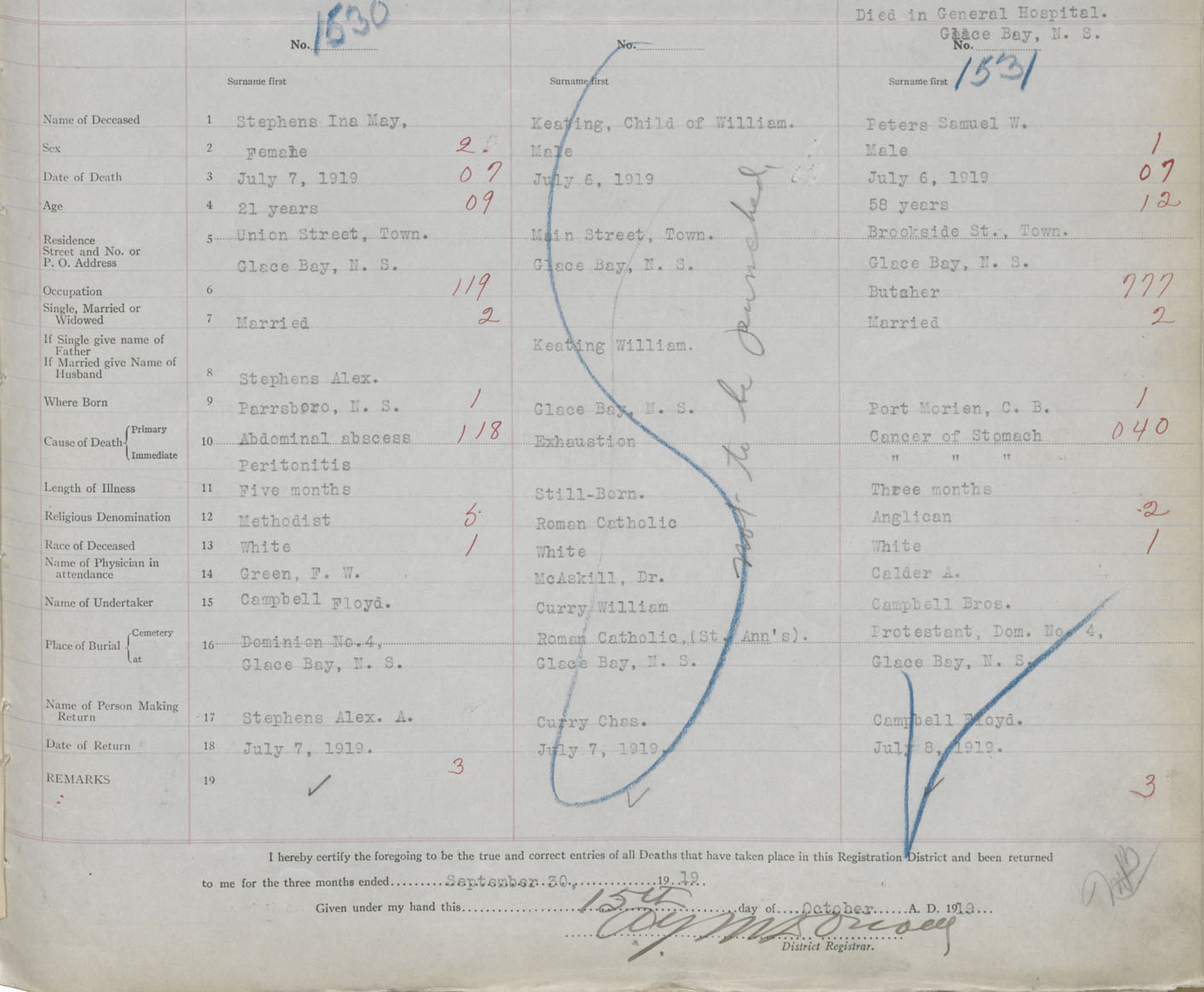 Death Registration: Year: 1919 book: 30 page: 361 number: 1530