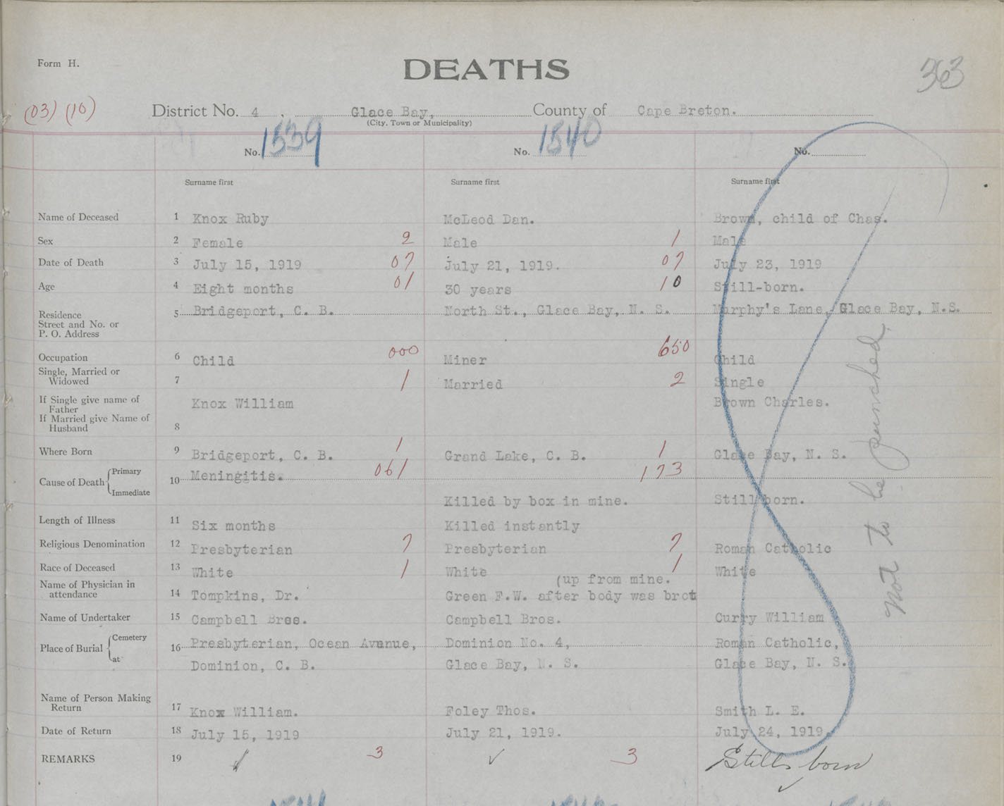 Death Registration: Year: 1919 book: 30 page: 363 number: 1539