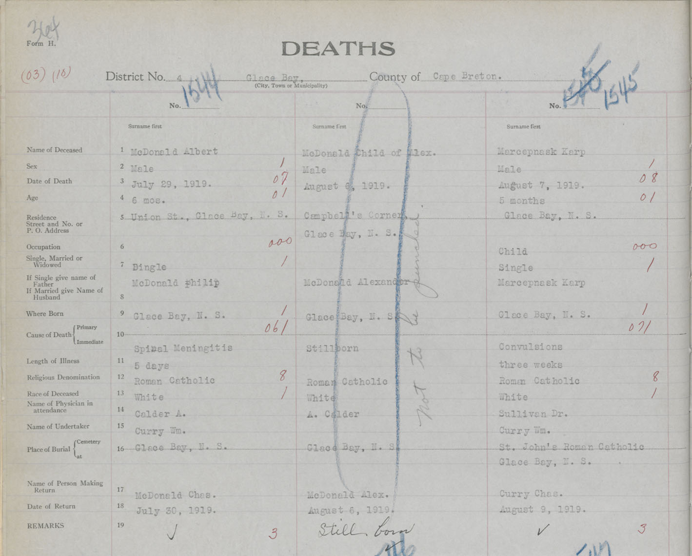 Death Registration: Year: 1919 book: 30 page: 364 number: 1544