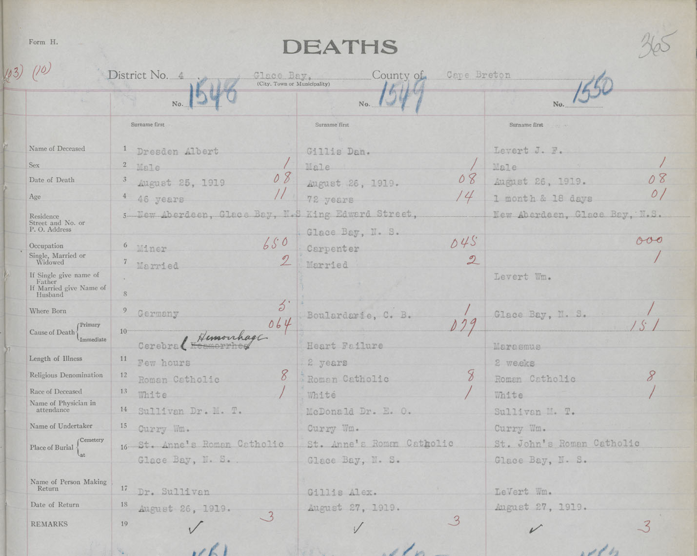 Male Death Registration: Year: 1919 book: 30 page: 365 number: 1548