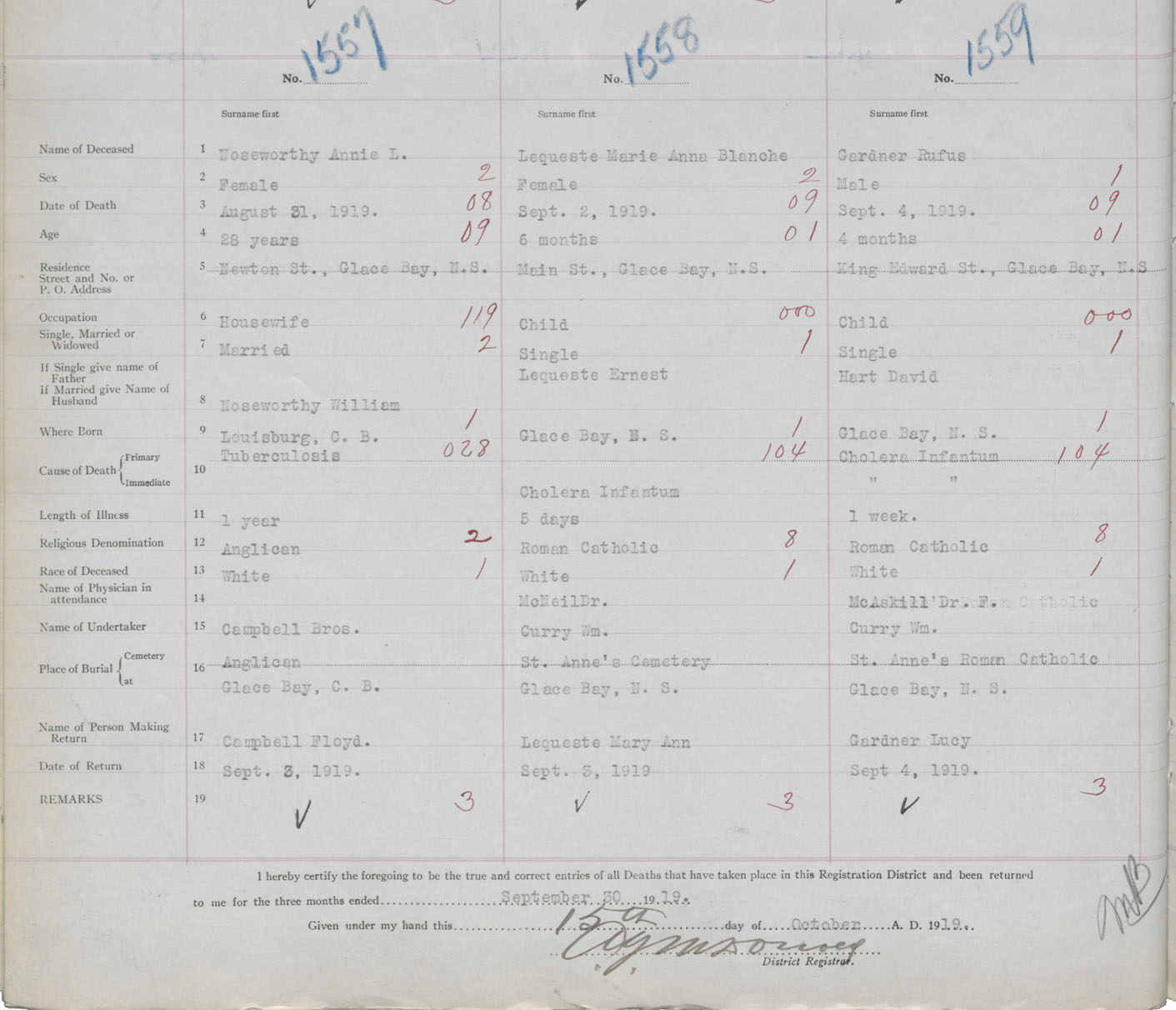 Death Registration: Year: 1919 book: 30 page: 366 number: 1557