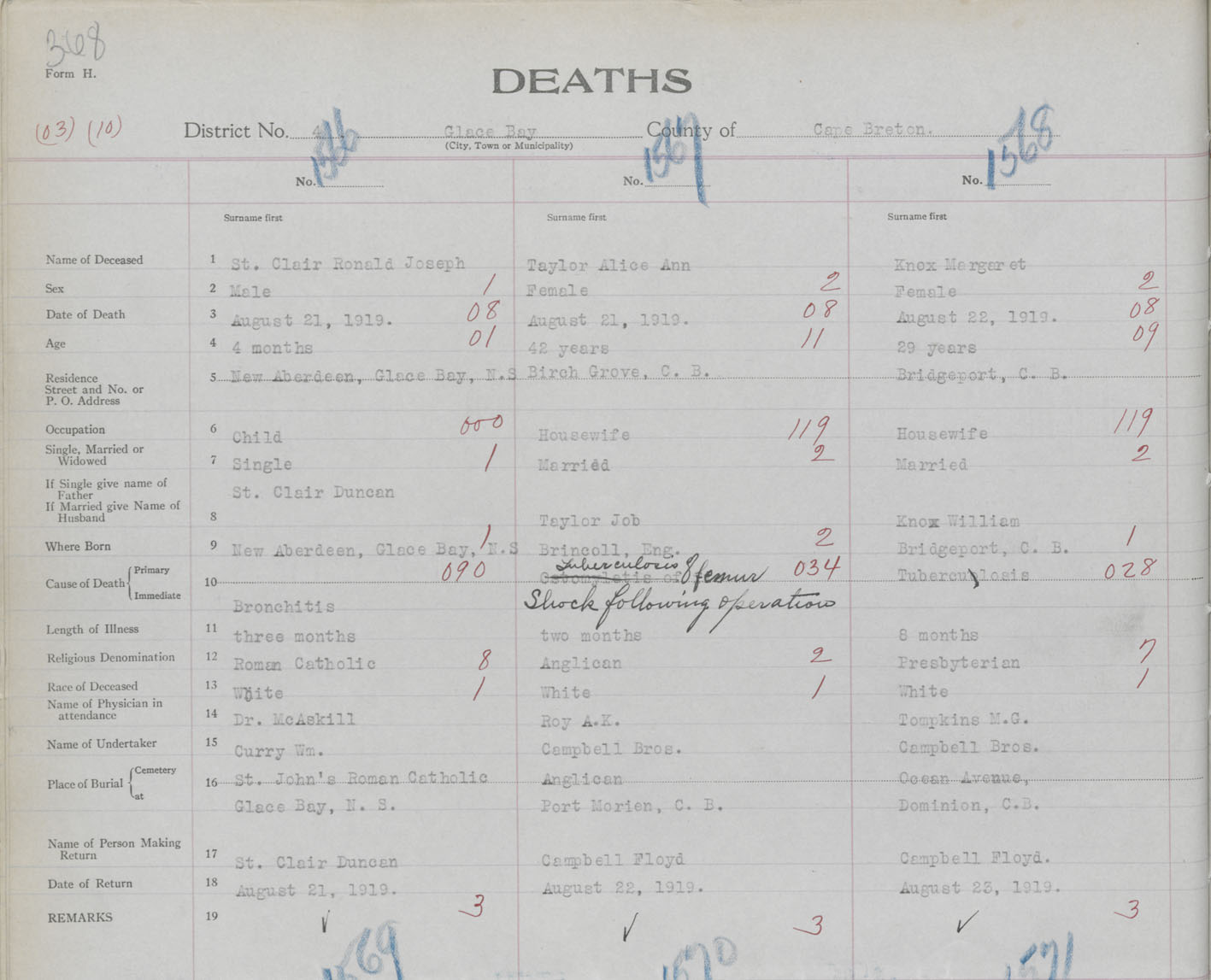 Death Registration: Year: 1919 book: 30 page: 368 number: 1566
