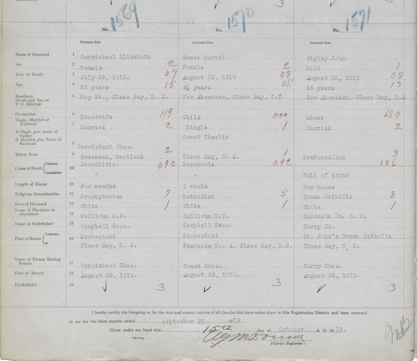 Death Registration: Year: 1919 book: 30 page: 368 number: 1569