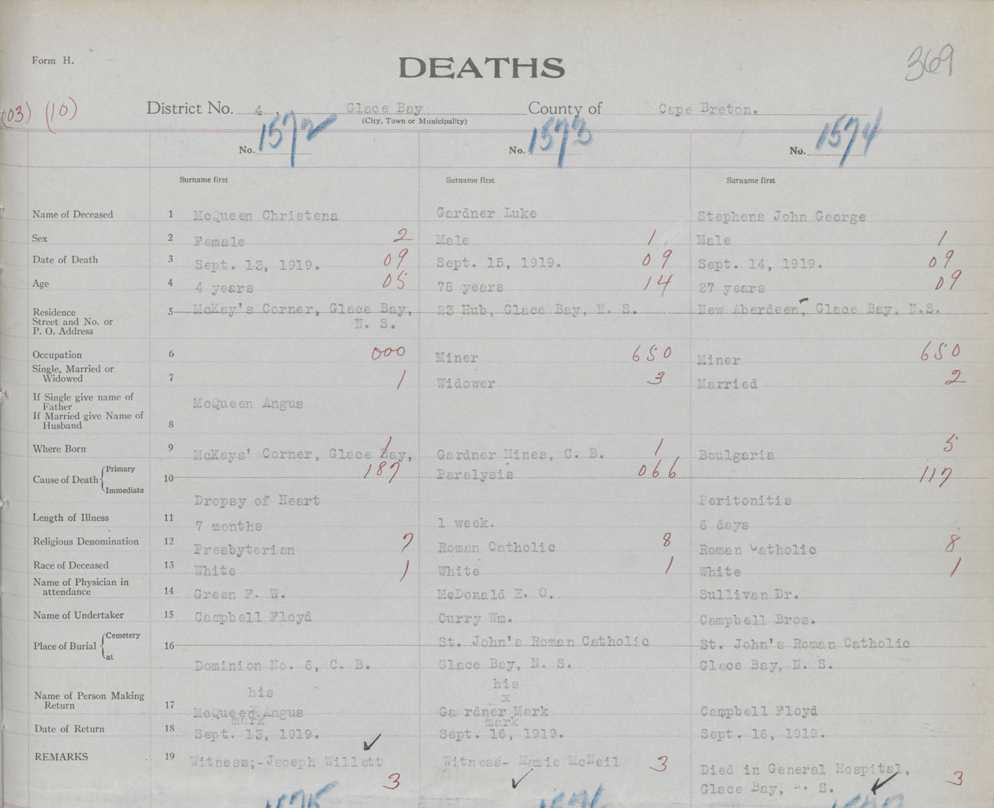 Death Registration: Year: 1919 book: 30 page: 369 number: 1572