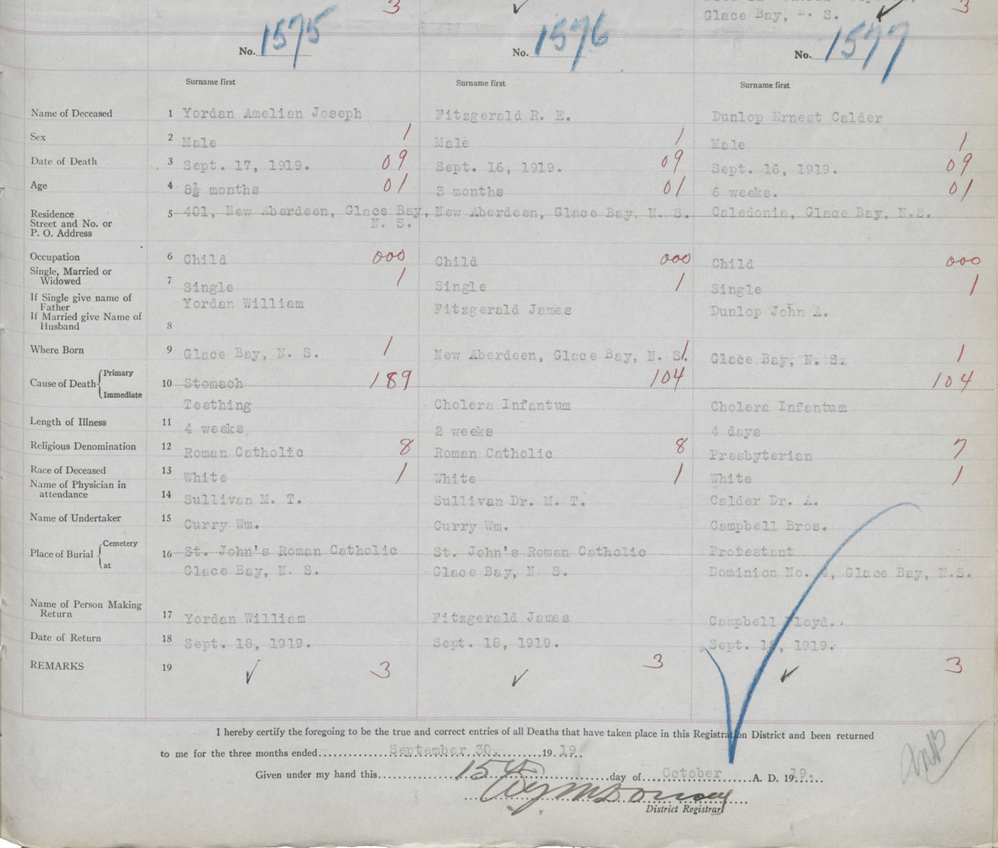 Male Death Registration: Year: 1919 book: 30 page: 369 number: 1575