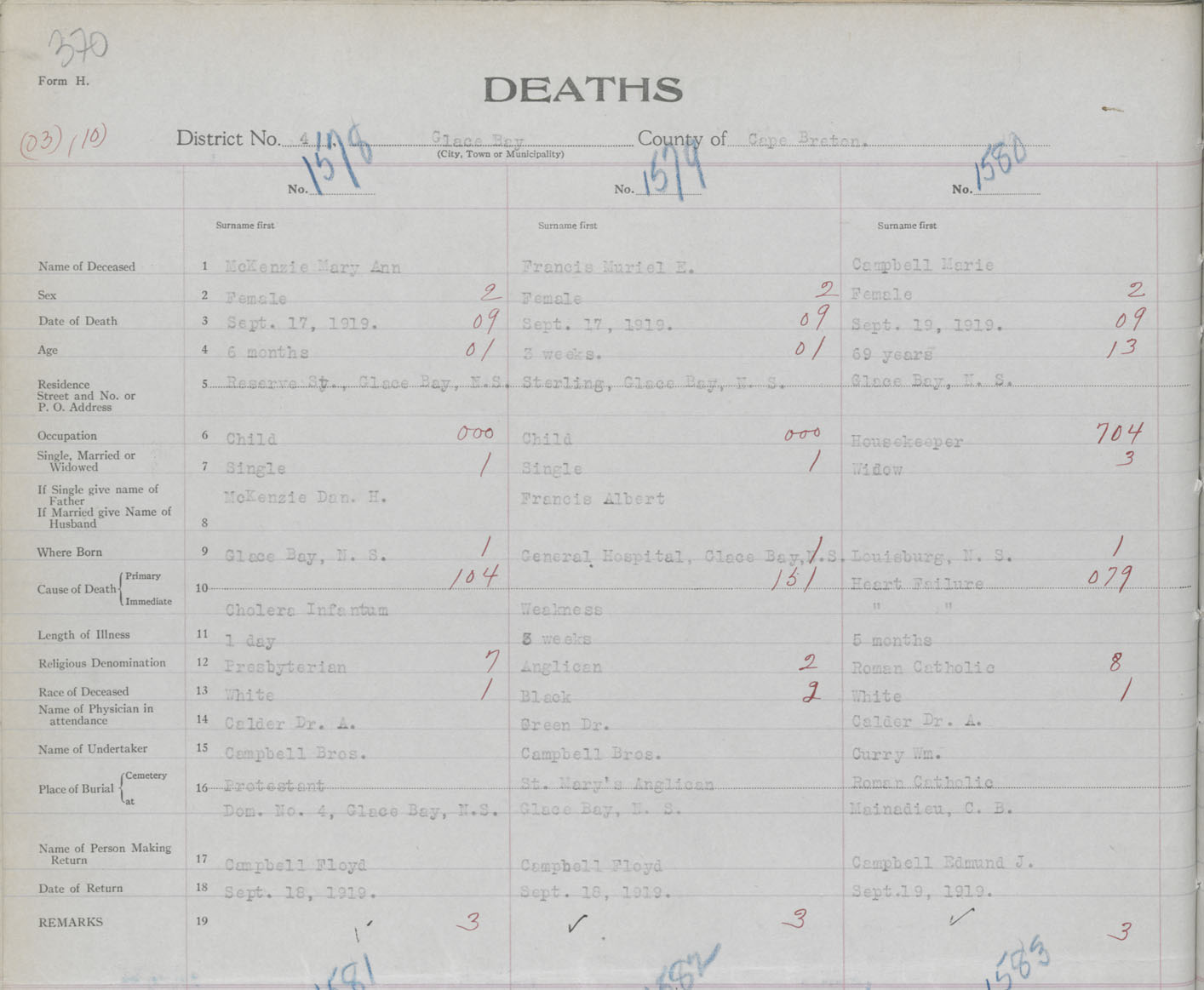 Death Registration: Year: 1919 book: 30 page: 370 number: 1578