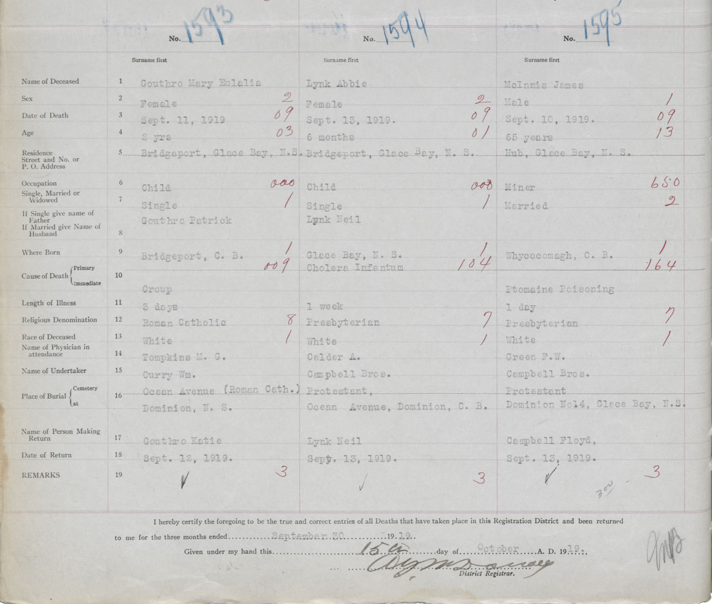 Death Registration: Year: 1919 book: 30 page: 372 number: 1593