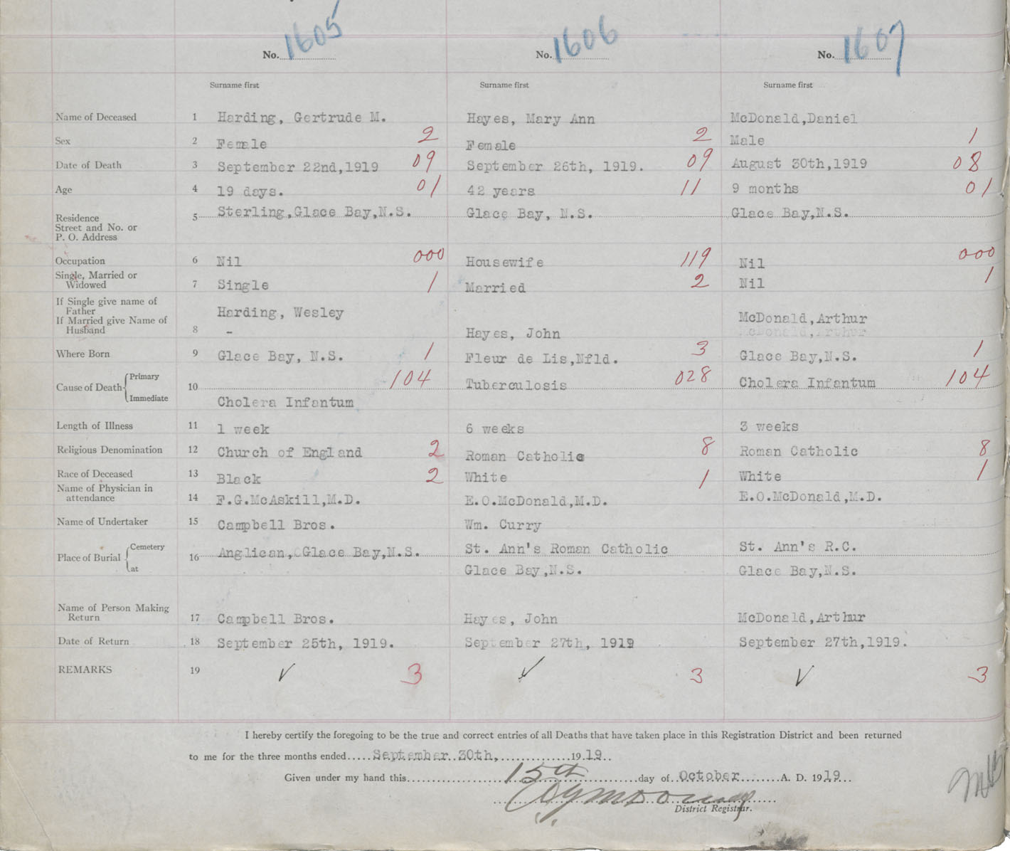 Death Registration: Year: 1919 book: 30 page: 374 number: 1605