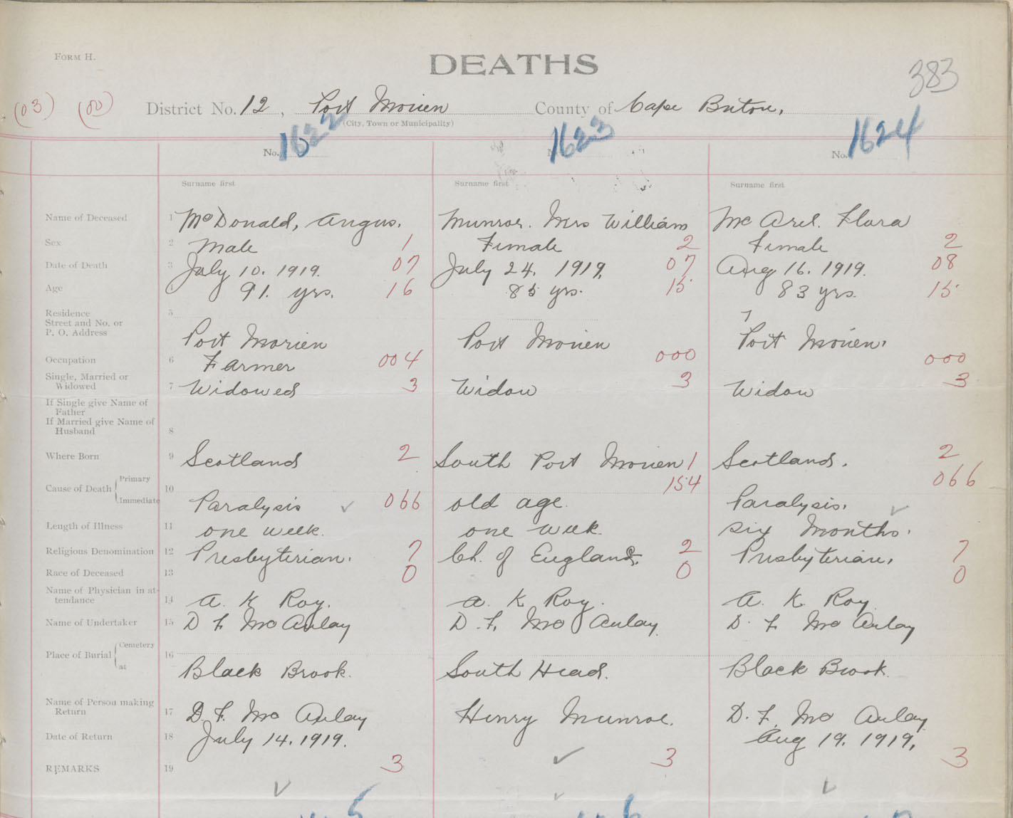 Death Registration: Year: 1919 book: 30 page: 383 number: 1622