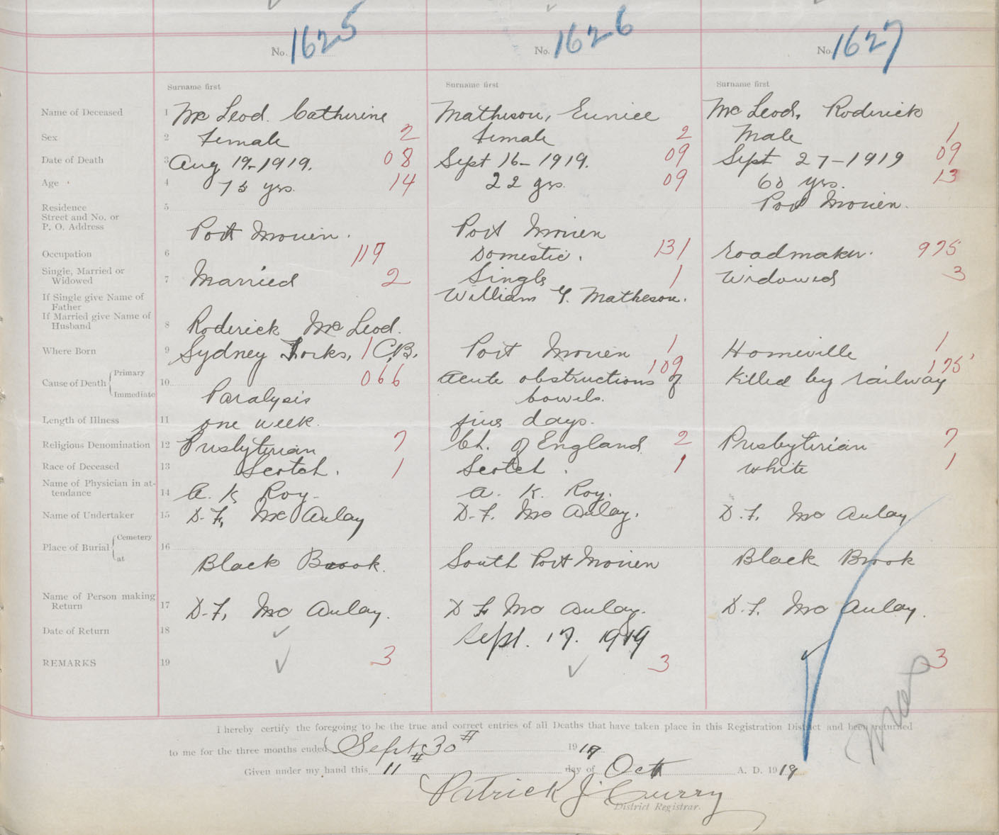 Death Registration: Year: 1919 book: 30 page: 383 number: 1625