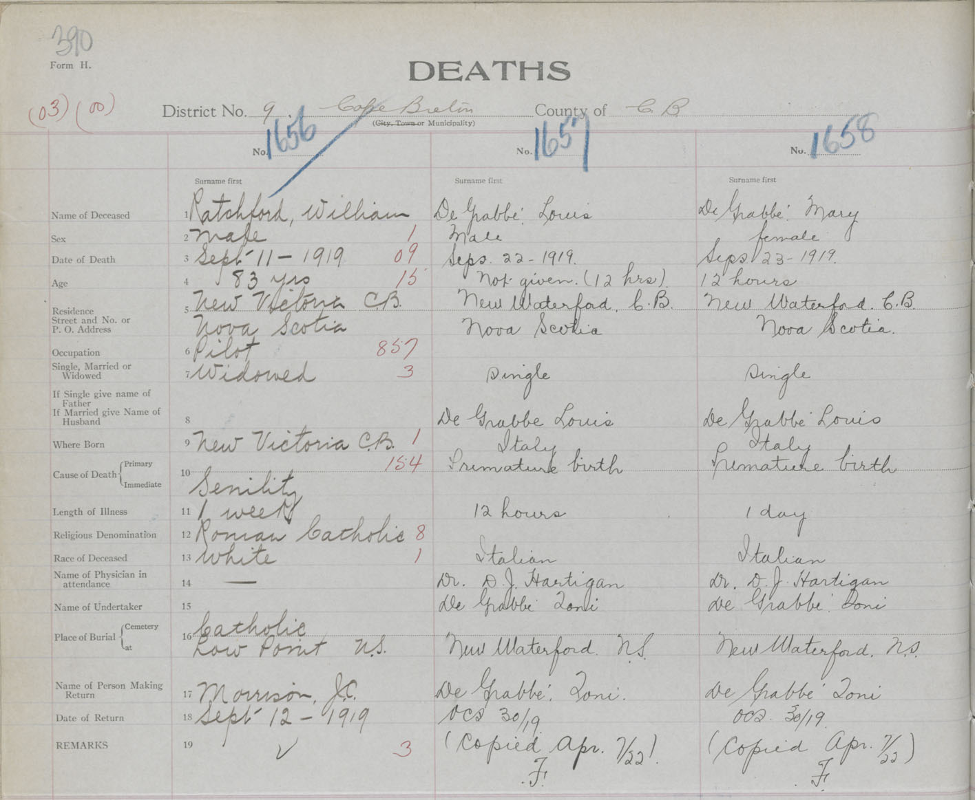 Death Registration: Year: 1919 book: 30 page: 390 number: 1656