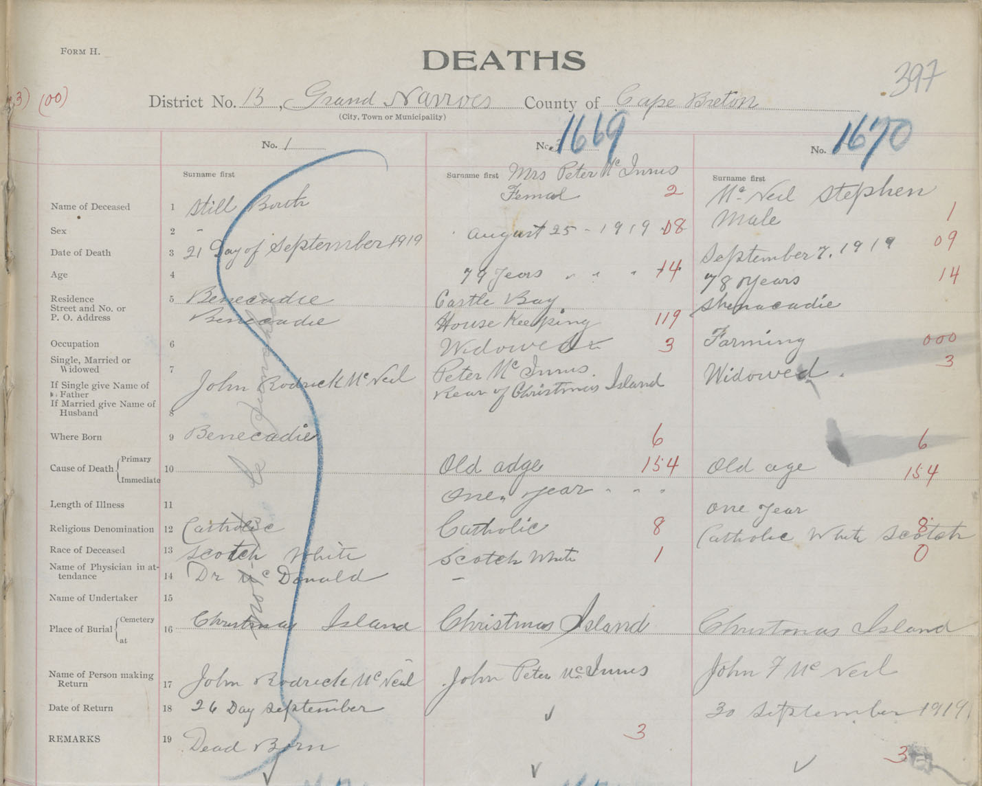 Death Registration: Year: 1919 book: 30 page: 397 number: 1669