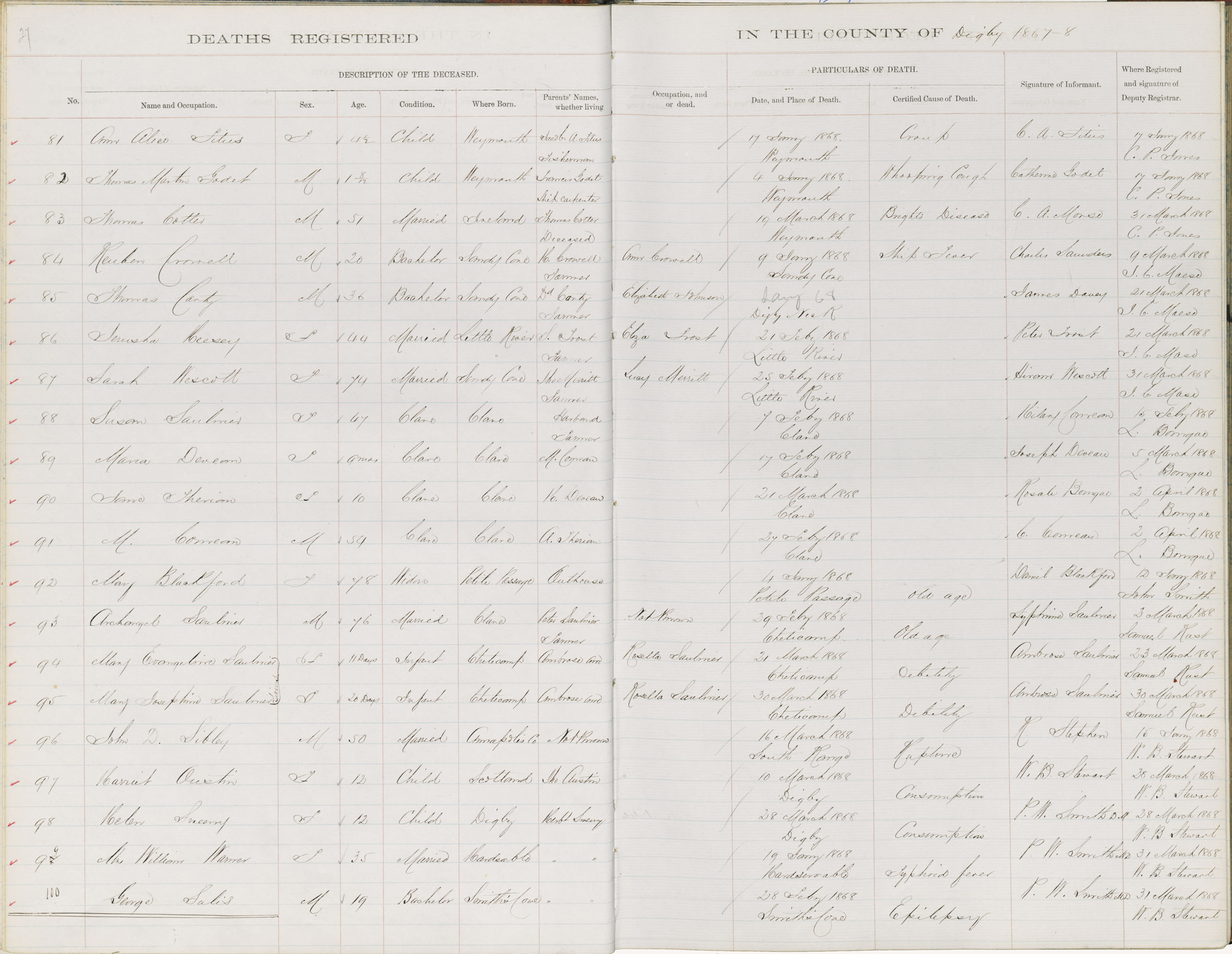 Death Registration: Year: 1868 book: 1806 page: 27 number: 81