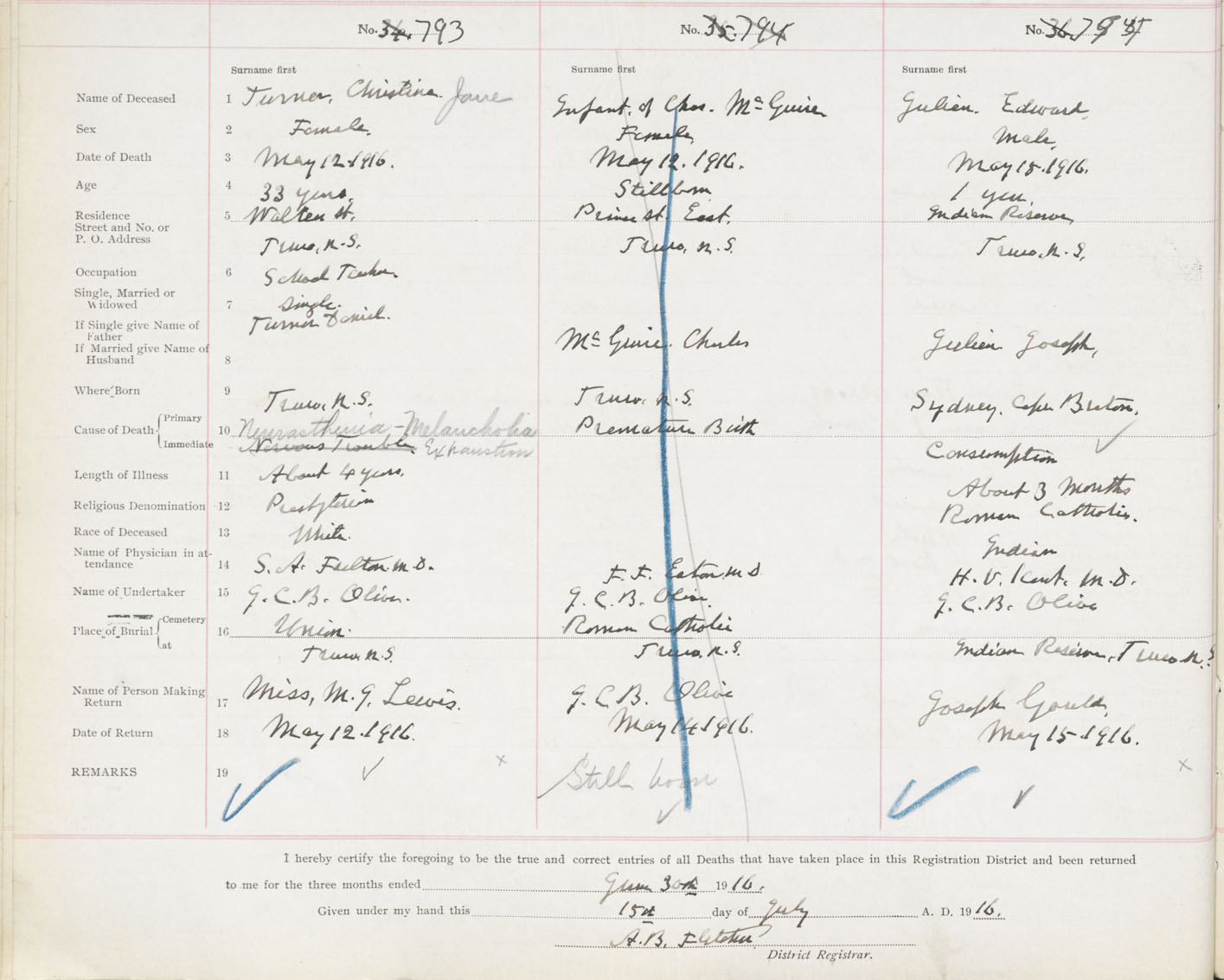 Male Death Registration: Year: 1916 book: 31 page: 244 number: 794