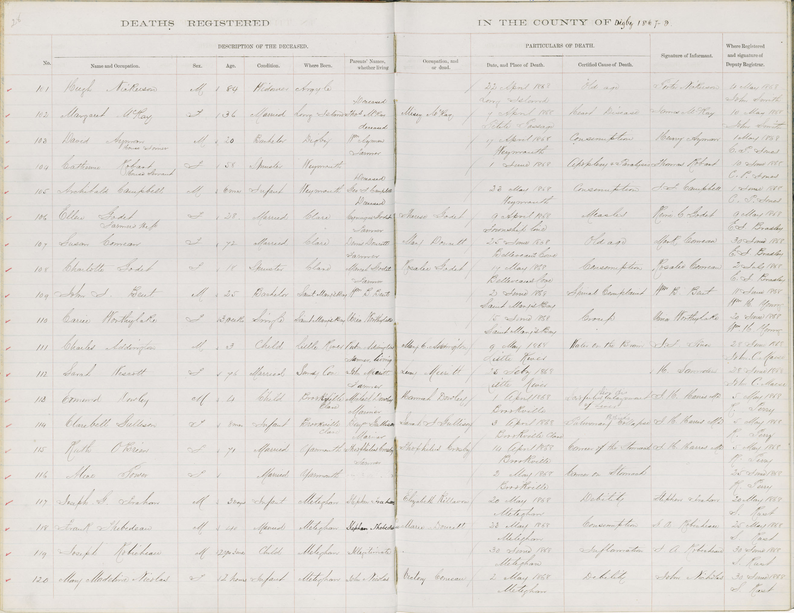 Death Registration: Year: 1868 book: 1806 page: 28 number: 101