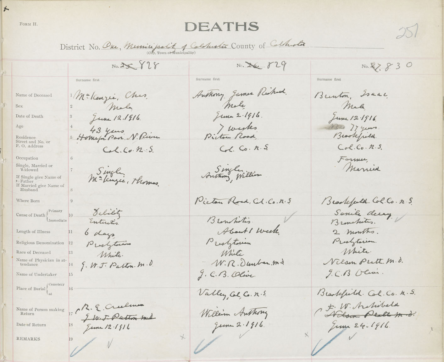 Male Death Registration: Year: 1916 book: 31 page: 251 number: 830