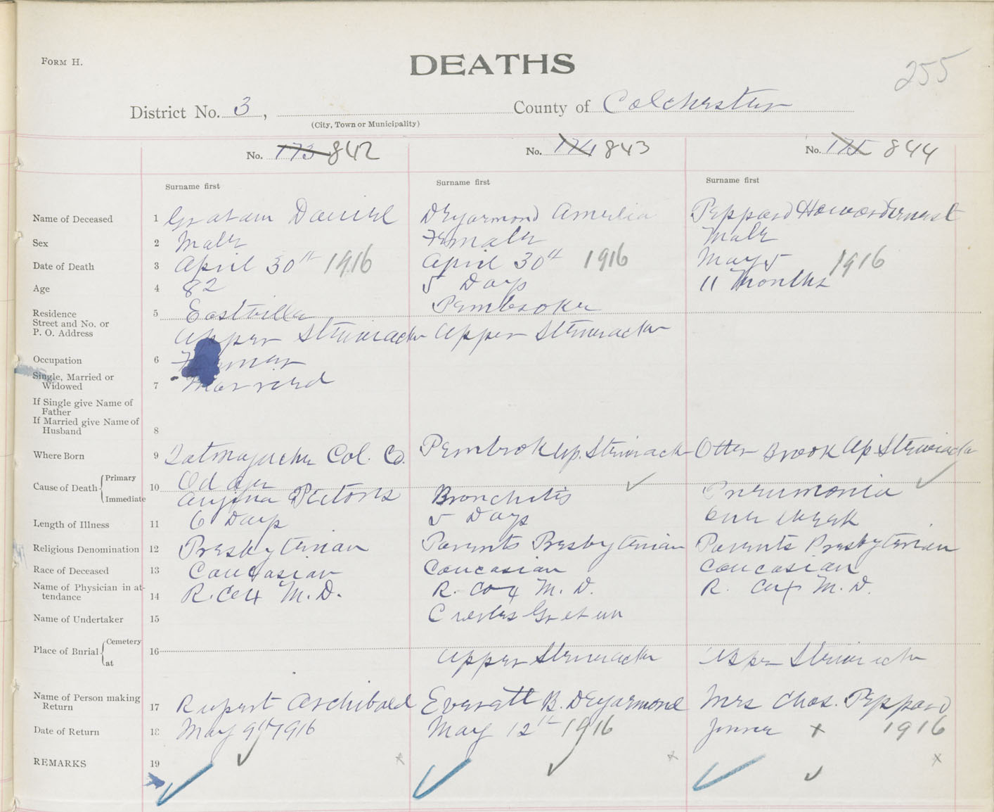 Male Death Registration: Year: 1916 book: 31 page: 255 number: 844