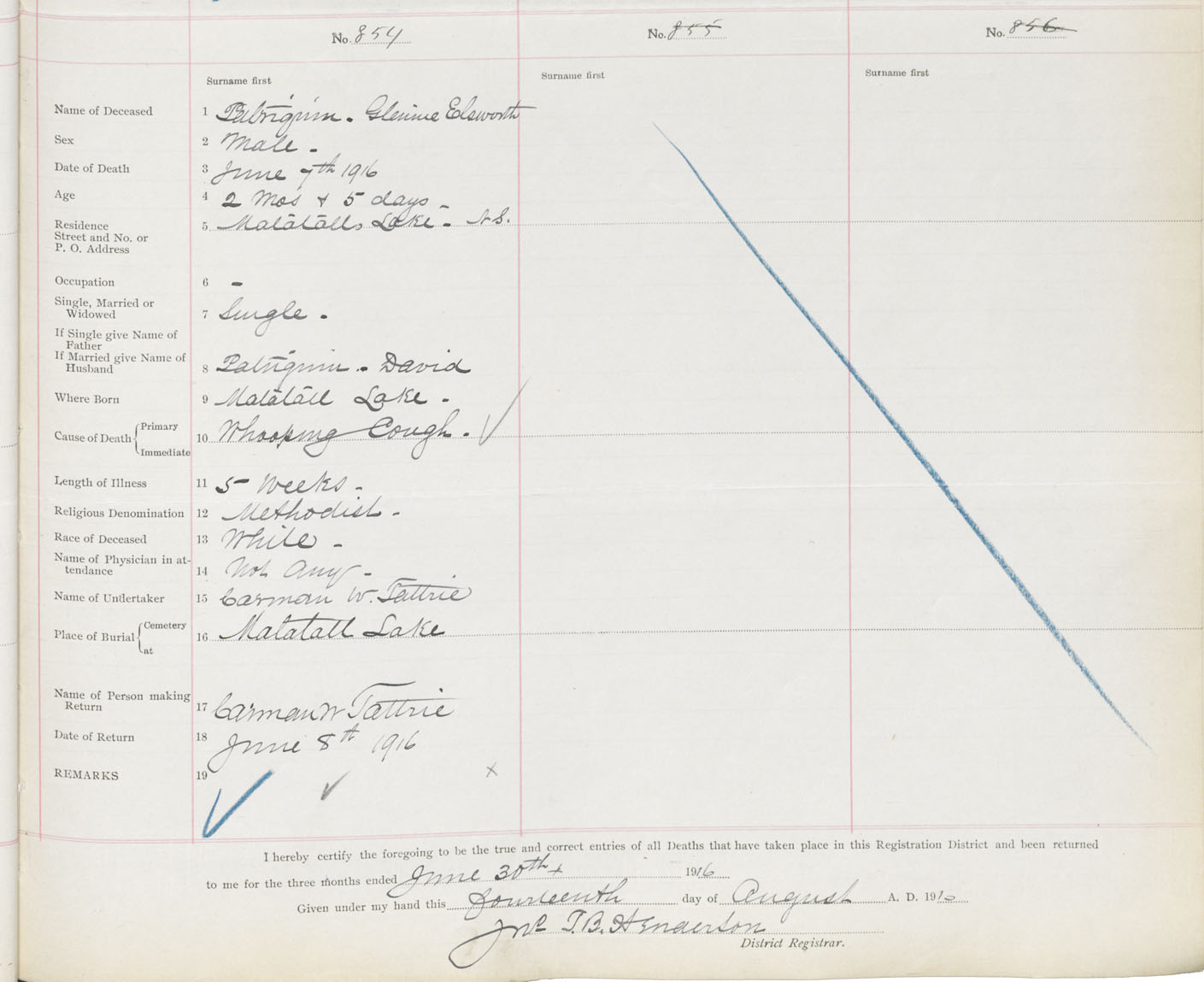 Male Death Registration: Year: 1916 book: 31 page: 259 number: 854