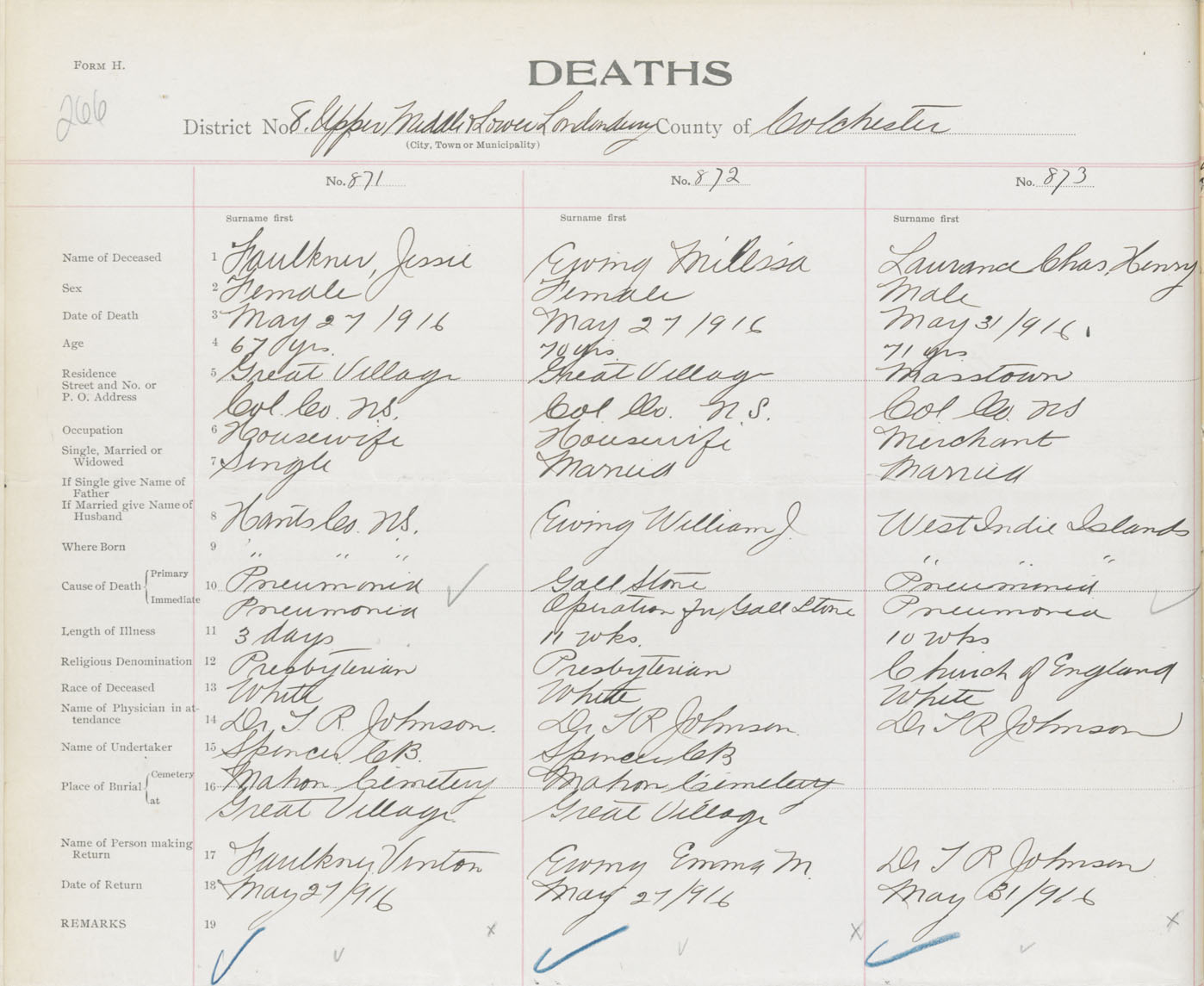 Male Death Registration: Year: 1916 book: 31 page: 266 number: 873