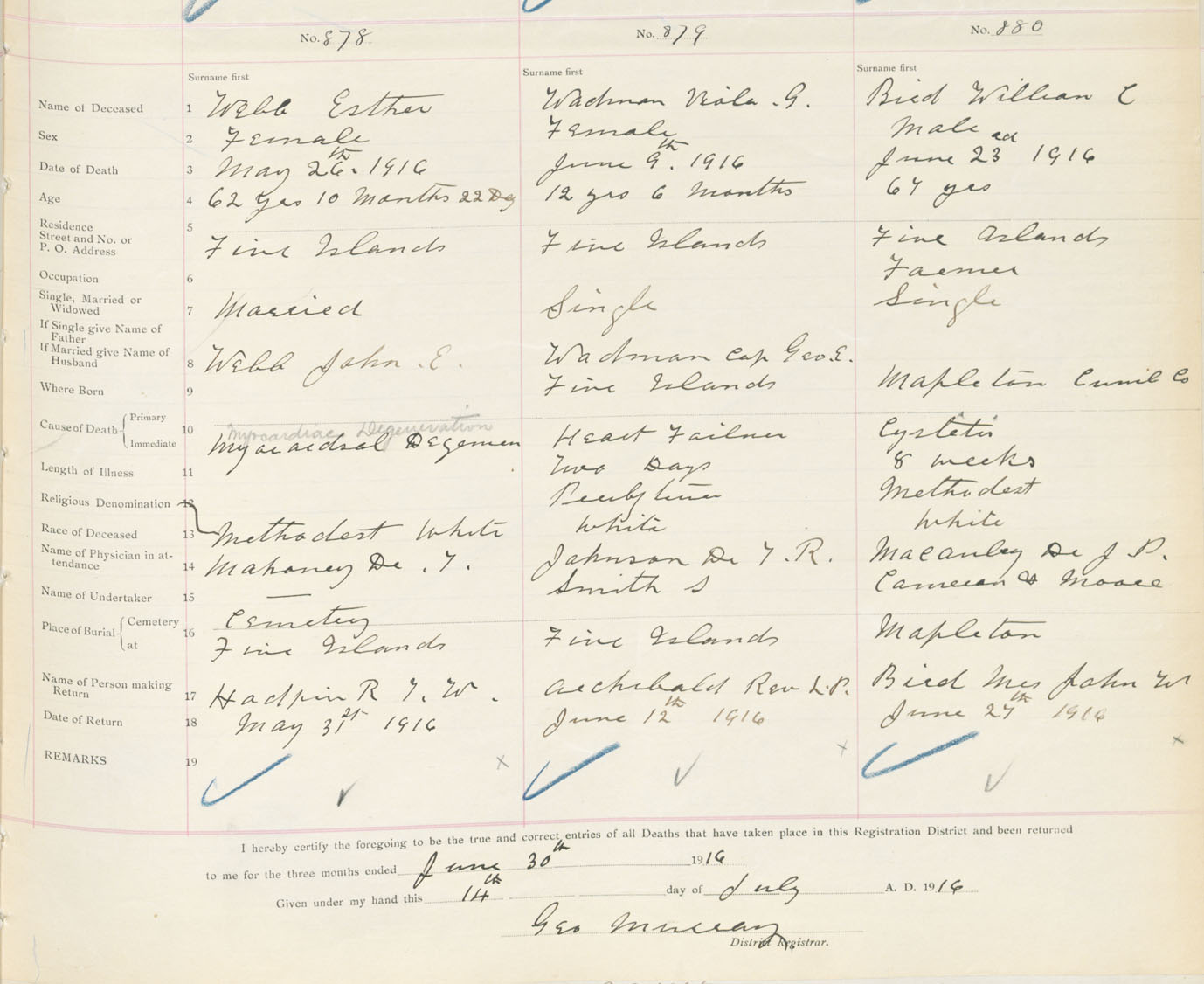 Male Death Registration: Year: 1916 book: 31 page: 267 number: 880