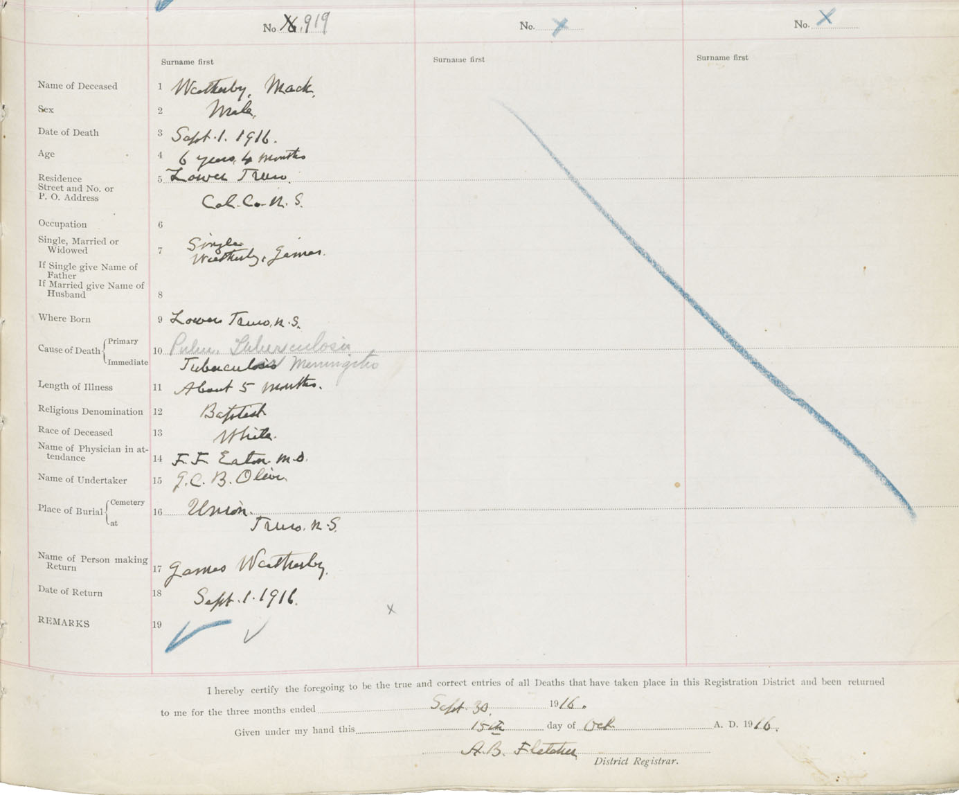 Male Death Registration: Year: 1916 book: 31 page: 277 number: 919