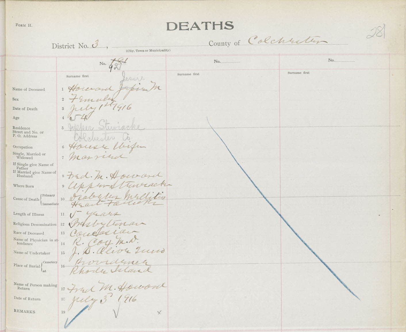 Female Death Registration: Year: 1916 book: 31 page: 281 number: 921