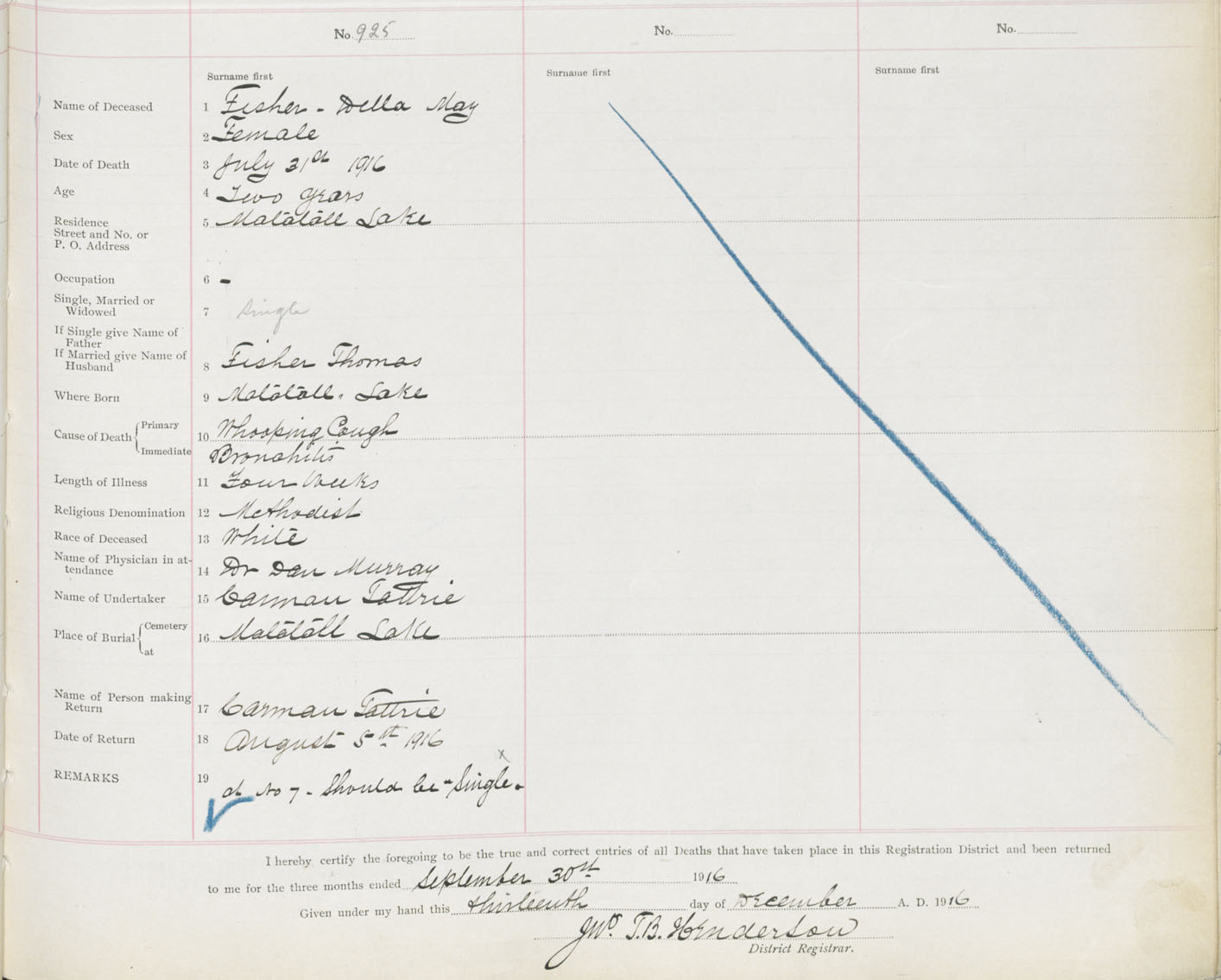 Female Death Registration: Year: 1916 book: 31 page: 283 number: 925