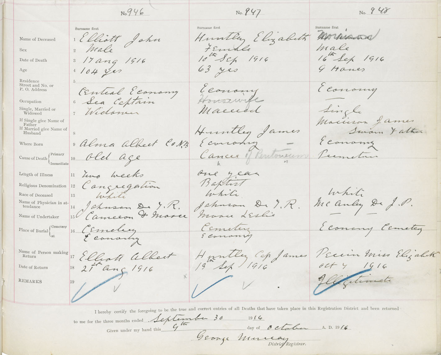 Male Death Registration: Year: 1916 book: 31 page: 291 number: 948