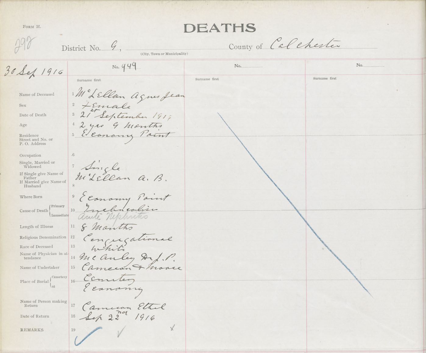 Female Death Registration: Year: 1916 book: 31 page: 292 number: 949