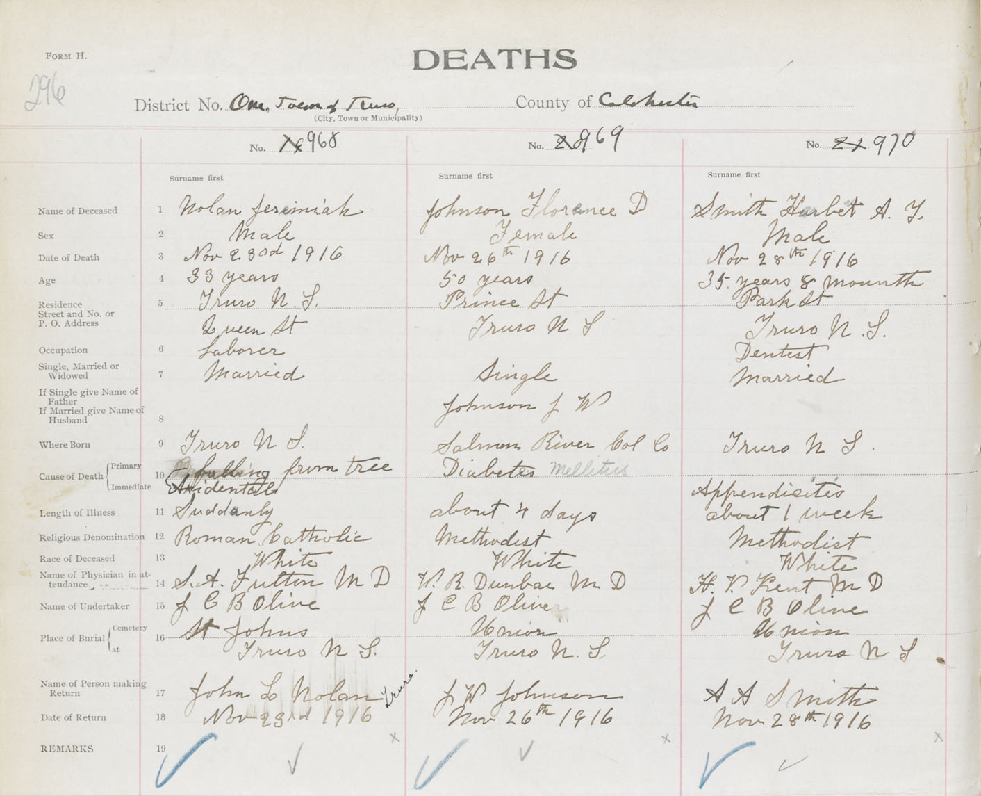 Male Death Registration: Year: 1916 book: 31 page: 296 number: 970