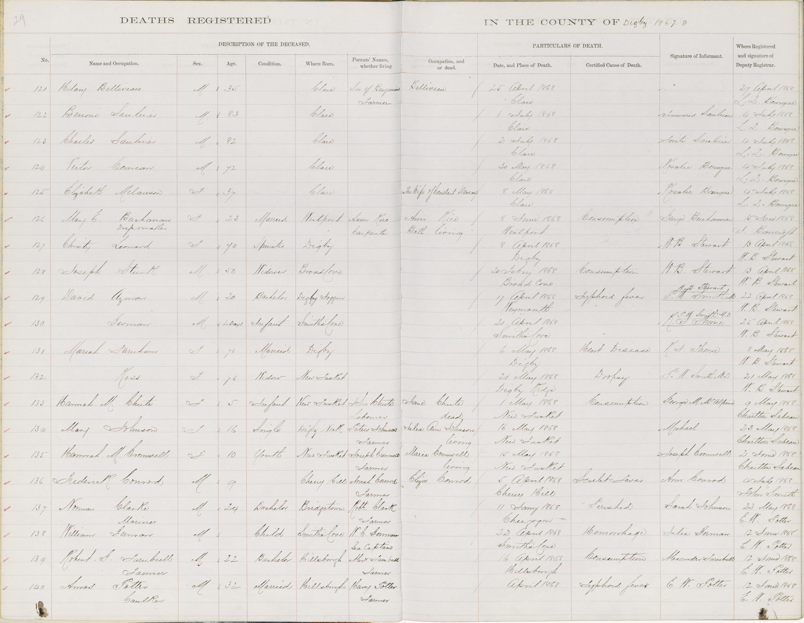 Death Registration: Year: 1868 book: 1806 page: 29 number: 121