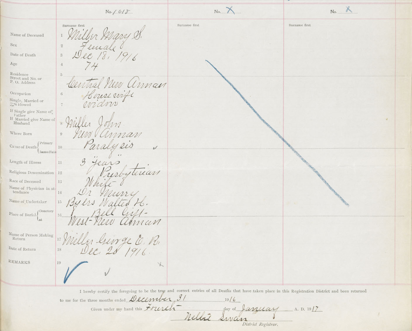 Female Death Registration: Year: 1916 book: 31 page: 309 number: 1018
