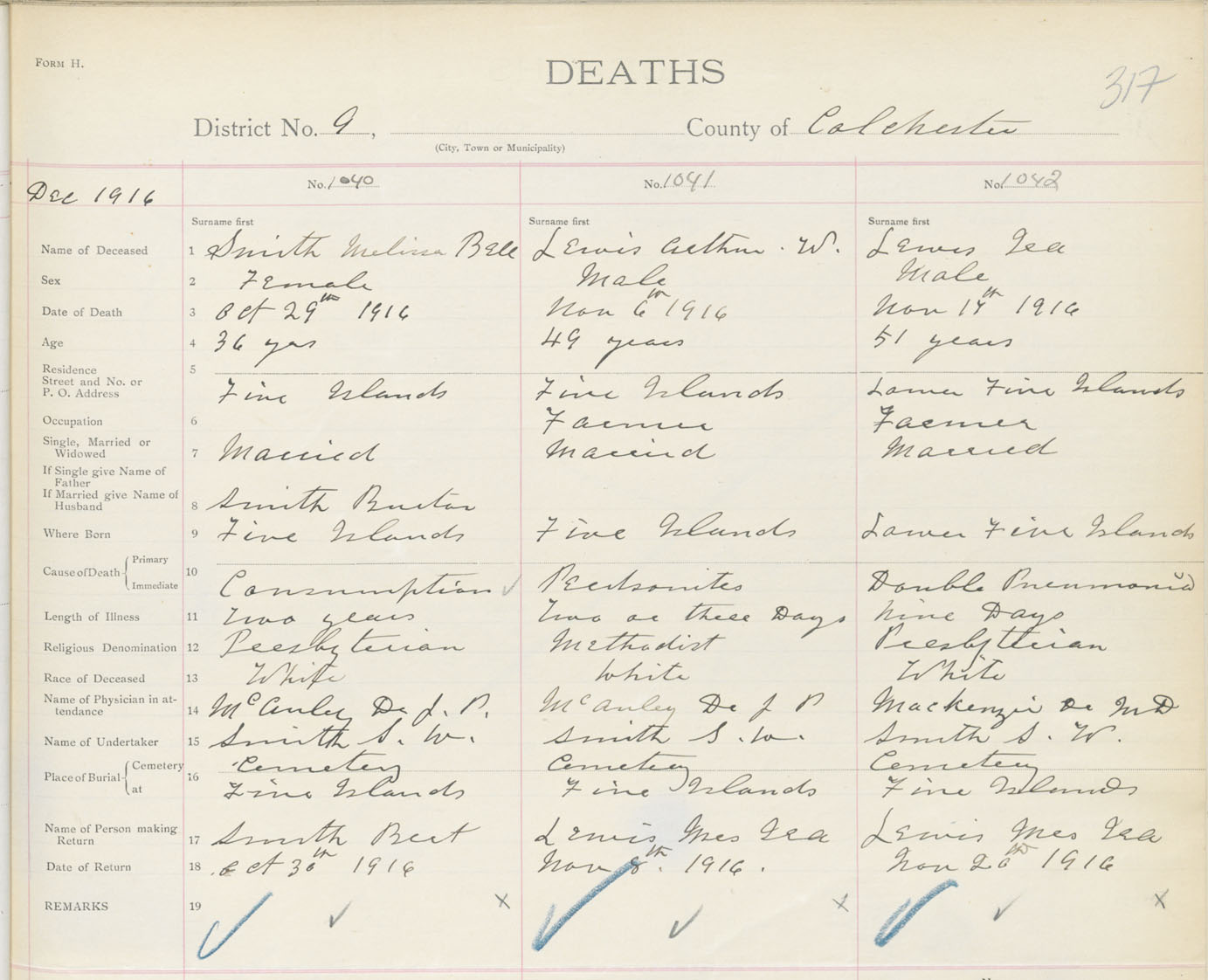 Male Death Registration: Year: 1916 book: 31 page: 317 number: 1042