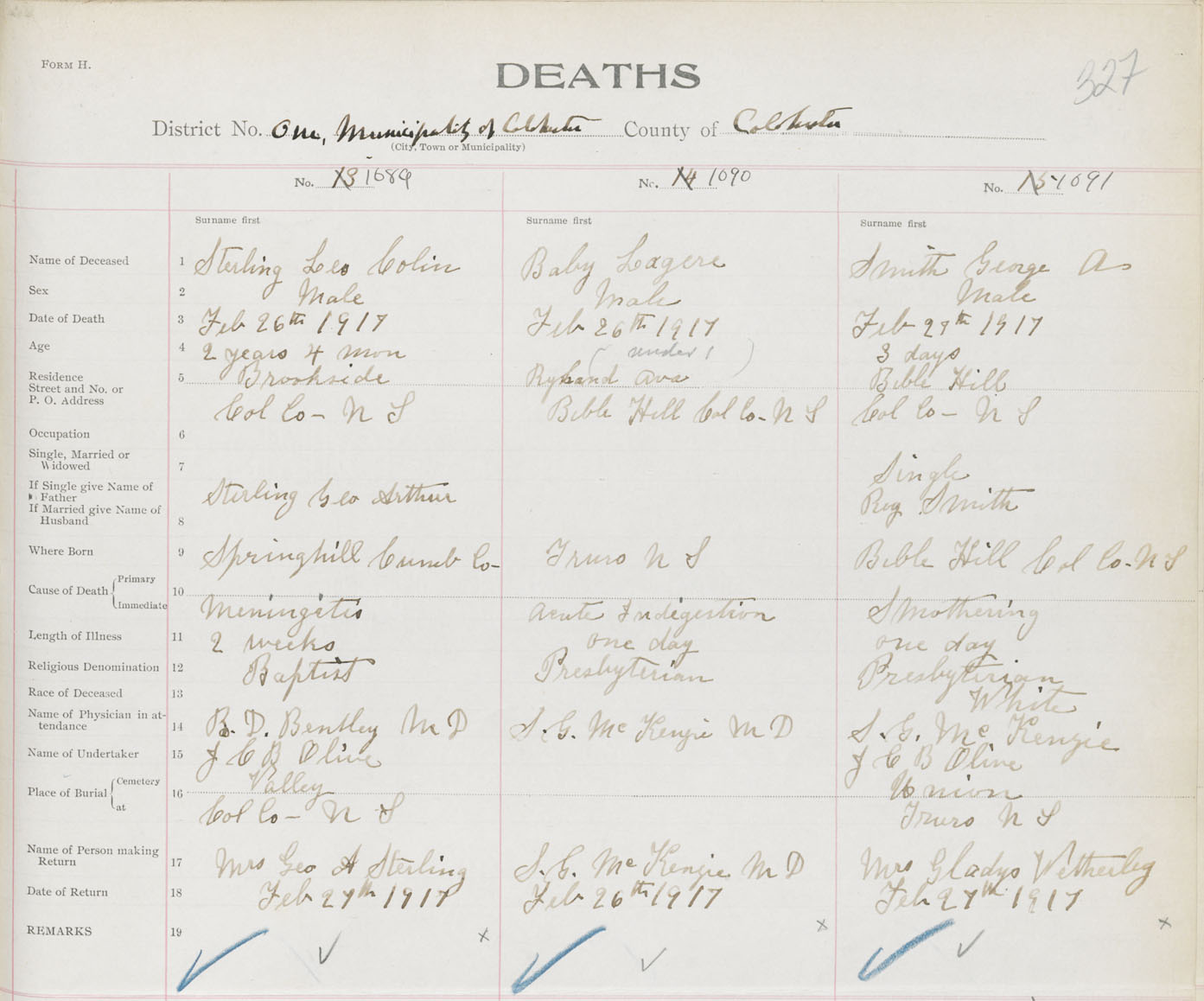 Male Death Registration: Year: 1917 book: 31 page: 327 number: 1091